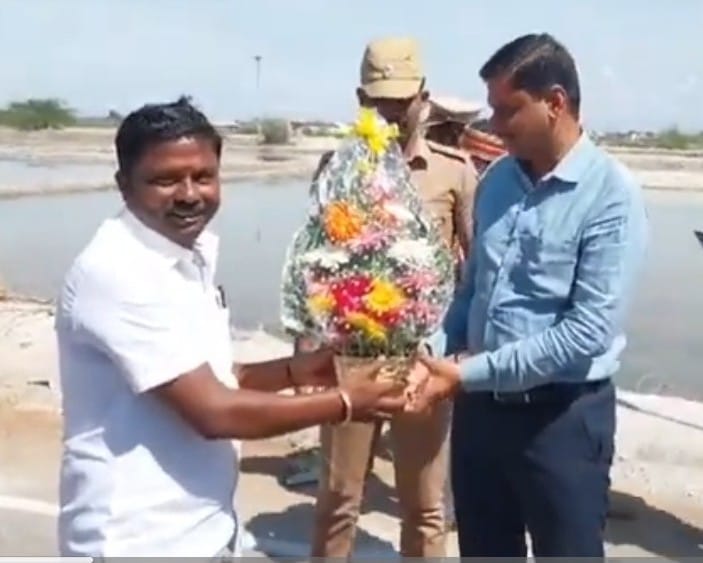 கனிமொழி கருணாநிதி எம்பி, அமைச்சர் நாசர், மாவட்ட ஆட்சியர் இளம்பகவத், ஆகியோரை பஞ்சாயத்து தலைவர் சரவணகுமார்