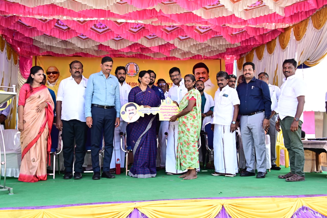 3 கோடியை 70 இலட்சம் மதிப்பில் புதிதாக கட்டப்பட்டுள்ள 56 குடியிருப்புகளை திறந்துவைத்து மரக்கன்றுகளை நட்டி பயனாளிகளுக்கு வீடுகளை வழங்கி மருத்துவத்துறை கையெடுகளை வெளியிட்டு கனிமொழி எம்பி பேசுகையில் தமிழகத்தில் இதுபோன்ற முகாம்களில் குடியிருந்து வருபவர்களில் புலம் பெயர்ந்த மக்கள் மனம் புண்படக் கூடாது என்பதற்காக மறுவாழ்வு முகாம் என்று முதலமைச்சர் அறிவித்துள்ளார். முகாமில் வாழ்ந்து கொண்டிருக்கும் இவர்களின் மனநிலையை புரிந்து கொண்டு தமிழக முதலமைச்சர் இதுபோன்ற வீடுகளை தமிழகம் முழுவதும் கட்டிக் கொடுத்தமைக்கு முதலில் நான் நன்றியை தெரிவித்துக் கொள்கிறேன். நான் ஒரு முகாமில் இளம்பெண்ணை சந்தித்த போது படி என்று கூறினேன். நான் படித்து என்ன செய்வது என்று திருப்பி கேள்வி கேட்டார். எதற்கு என்றால் புலம் பெயர்ந்த மக்கள் வேலைவாய்ப்பு இல்லாமல் மிகவும் கஷ்டப்படுகிறோம். ஆண்கள் பல இடங்களுக்கு வேலைக்கு சென்று அதன் மூலம் தான் வாழ்கிறோம் என்றார். பெண்கள் தொழில் செய்வதற்கு படிப்பும் அவசியம் என்பதை உணர செய்து அதற்கு முற்றுப்புள்ளி வைக்கும் வகையில் முதலமைச்சர் படித்தால் வேலைவாய்ப்பு உருவாக்கி கொடுக்கப்படும் என்று திமுக ஆட்சியில் உத்திரவாதம் கொடுக்கப்பட்டது. தொடர்ந்து இந்த மக்களுக்கு குடியுரிமை பெறுவதற்கு ஒன்றிய அரசுடன் பேச்சுவார்த்தை நடைபெறுகிறது. எங்களுடைய வாழ்வாதாரம் பாதிப்பு இல்லாமல் அடுத்த தலைமுறையை நோக்கி செல்ல வேண்டும் என்பதற்காகத் தான் கலைஞர் ஆட்சியில் மருத்துவ படிப்பிற்கு வழிவகை செய்யப்பட்டது. ஆனால் நீட் தேர்வு மூலம் பாதிப்பு ஏற்பட்டது. இதையும் தமிழகம் முதலமைச்சர் உணர்ந்து கொண்டு நாடு கடந்து வந்த மக்களின் நலன் கருதி ஒர் இடத்தில் இருந்த ஒரு மரம் வேரோடு சாய்க்கப்பட்டு மாற்று இடத்திற்கு புலம் பெயர்ந்து வரும் போது அவர்களுக்காக சில கவலைகளை மறக்கும் வகையில் நாங்கள் இருக்கிறோம் என்ற அடிப்படையில் தீர்வு கண்ட கெல்த் திட்டம் உருவாக்கப்பட்டது. அது உங்கள் நலன் பாதுகாக்கப்பட்டது. இந்த பிரச்சனையை உணர்ந்து கொண்டு ஒவ்வொரு படியாக பாதுகாக்கவும் எதிர்காலத்தில் எல்லோரையும் போல் தகுதியுள்ளவர்களாக வரவேண்டும் என்று தான் தமிழக முதலமைச்சர் பல்வேறு திட்டங்களை உருவாக்கி வாக்களித்த மக்களுக்கு மட்டுமின்றி வாக்களிக்காத மக்களுக்கும் பணியாற்றி வருகிறார் என்று கனிமொழி எம்பி பேசினார். அதனைத் தொடர்ந்து அமைச்சர் நாசர் பேசுகையில் தமிழக முதலமைச்சர் அனைத்து தரப்பினருக்கும் நன்மை கிடைக்க வேண்டும். அதன் மூலம் இந்த நாடும் வளர வேண்டும் என்று பணியாற்றுகின்ற காரணத்தால் இந்தியாவில் உள்ள முதலமைச்சர்களுக்கு எல