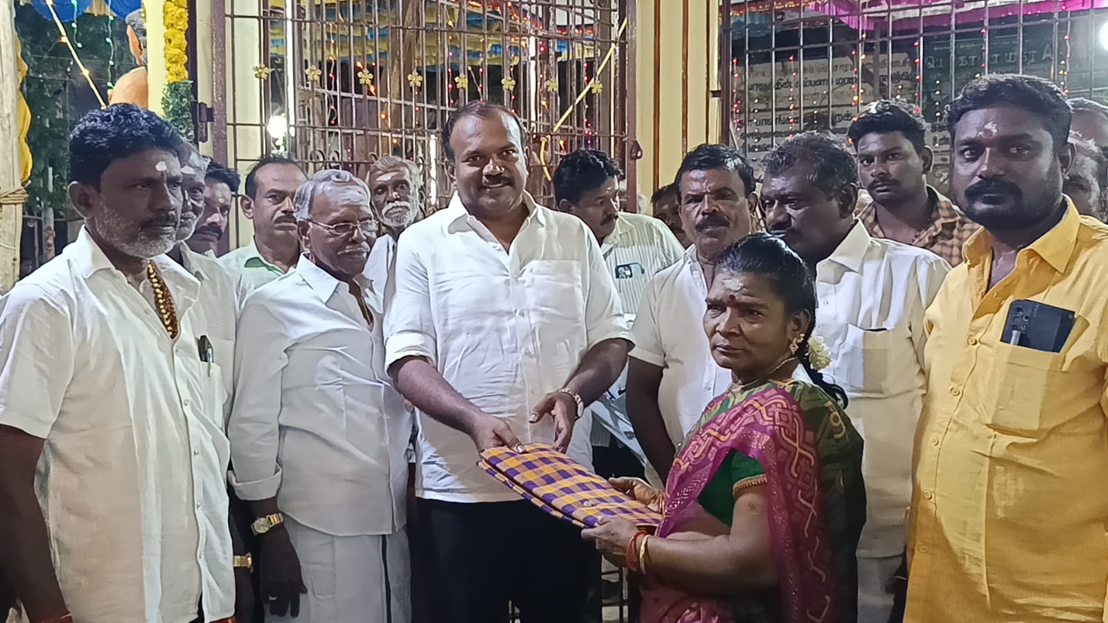 தூத்துக்குடி மாநகரில் பிரதிபெற்ற பழமையான நந்தகோபாலபுரம் செல்வநாயகபுரம் பகுதியில் அமைந்துள்ள ஸ்ரீபத்திரகாளியம்மன் கோவில் தசரா உற்சவ விழாவையொட்டி கடந்த 1ம் தேதி தொடங்கி 11நாட்கள் நடைபெறும் தசரா விழாவில் தினமும் சிறப்பு பல்வேறு அம்மன் அலங்காரத்துடன் பூஜைகள் நடைபெற்று வந்தன. இதில் ஏழாம் நாள் மண்டகப்படியாக முன்னாள் தர்மகர்த்தாவும் முன்னாள் எம்.எல்.ஏவுமான பொியசாமி குடும்பத்தின்சார்பில் நடைபெற்ற சிறப்பு பூஜையில் கோவில் தர்மகர்த்தா ராஜா ெபாியாசமி, மேயர் ஜெகன் பொியசாமி, கலந்துகொண்டு சாமி தாிசனம் செய்தனர். அதில் கோவில் மகளிர் அணியினருக்கு மேயர் ஜெகன் பொியசாமி சேலைகள் வழங்கினார்.