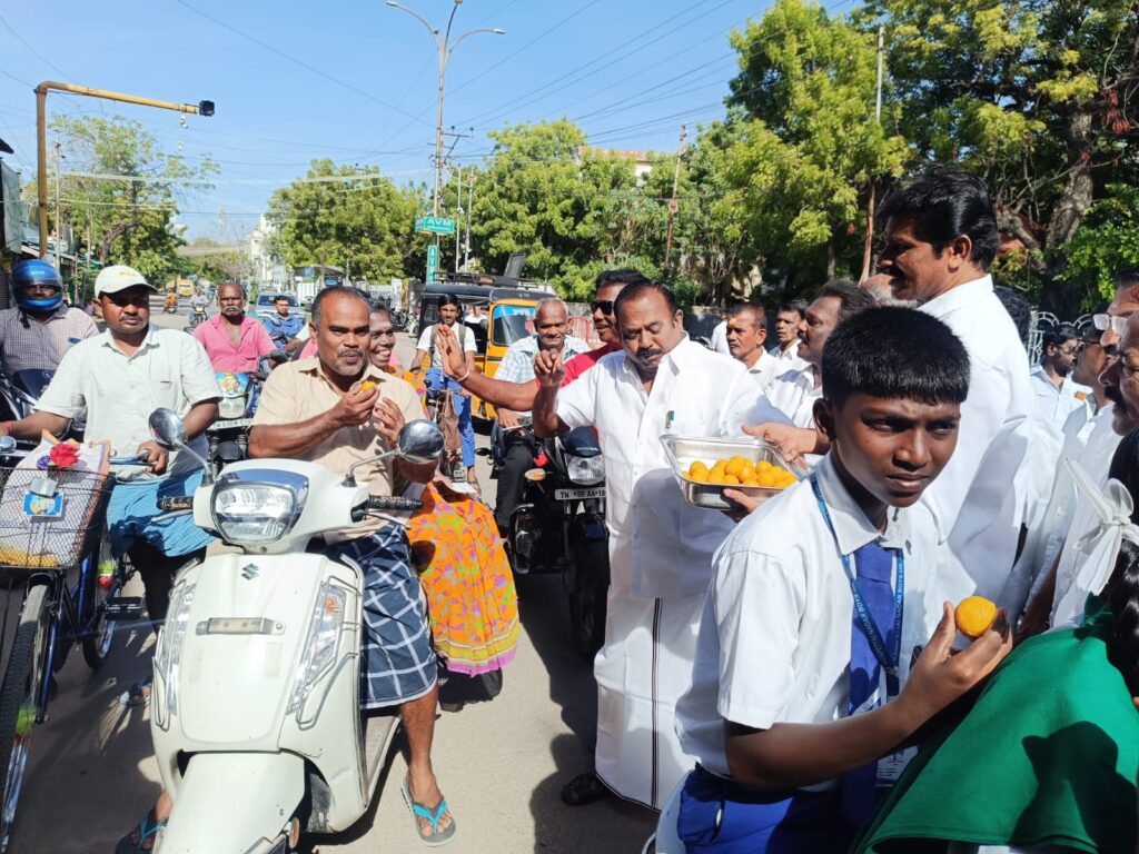 அதிமுகவின் 53-வது ஆண்டு விழாவை முன்னிட்டு இன்று (அக்டோபர் 17) தூத்துக்குடி டூவிபுரம் 9-வது தெருவில் உள்ள கழக வர்த்தகஅணி அலுவலகத்தில் கழக கொடி ஏற்றி அலுவலகம் முன்பு அலங்கரித்து வைக்கப்பட்ட முன்னாள் முதலமைச்சர்கள் எம்.ஜி.ஆர்., ஜெயலலிதா ஆகியோரின் திருவுருவ படத்திற்கு மாலை அணிவித்து மரியாதை செலுத்தினார். பின்னர் பழைய மாநகராட்சி வளாகத்தில் உள்ள எம்.ஜி.ஆரின் திருவுருவ சிலைக்கு மாலை அணிவித்து மரியாதை செலுத்தி, பொதுமக்களுக்கு இனிப்புகள் வழங்கினார்.
