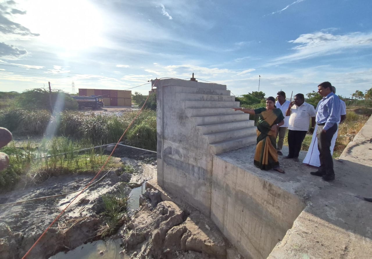 தமிழ்நாடு முதலமைச்சர் மு.க. ஸ்டாலின் அறிவுறுத்தலின்படி, வடகிழக்கு பருவமழை முன்னெச்சரிக்கை நடவடிக்கையாக தூத்துக்குடி – கோரம்பள்ளம் 5வது வடிகால் மற்றும் மீன்வளக் கல்லூரி அருகே ஆகிய பகுதிகளில் மழைநீர் வடிகால் குறித்து வடக்கு மாவட்ட திமுக செயலாளரும் சமூக நலன் மற்றும் மகளிர் உரிமைத்துறை அமைச்சருமான தி கீதாஜீவன் ஆய்வு மேற்கொண்டார்.