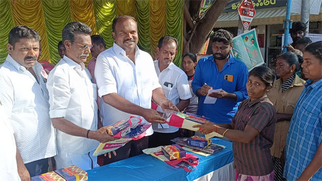 தூத்துக்குடி மாநகராட்சி கணக்கு குழு தலைவரும் தெற்கு மாவட்ட திமுக வர்த்தக அணி துணைச்செயலாளருமான ரெங்கசாமிதலைமையில் ஹவுசிங்போர்டு பகுதியில் நடைபெற்ற விழாவில் மேயர் ஜெகன் பொியசாமி கலந்து கொண்டு 3வது வார்டுக்குட்பட்ட தூய்மை பணியாளா்கள் அலுவலர்களுக்கு தீபாவளி பண்டிகையை முன்னிட்டு புத்தாடைகள் இனிப்புகள் வழங்கி பேசுகையில் மாநகராட்சி பகுதியில் எல்லோரும் சுகாதாரமான முறையில் வாழ வேண்டும். என்பதற்காக பணியாற்றும் தூய்மை பணியாளர்களின் பங்கு போற்றதக்கது. காரணம் கடந்த மழைவௌ்ள காலத்தின் போது தேவையற்ற கழிவு பொருட்களை அகற்றியது மட்டுமின்றி பல உயிாிழப்பு ஏற்பட்டபோது அந்த இடத்திலும் நின்று பல்வேறு பணிகளை இந்த மாநகராட்சி பகுதி மக்கள் நலன் கருதி பணியாற்றியதை எண்ணி மகிழ்கிறேன் இனி வரும் காலங்களில் தன்னலம் கருதாமல் பொது நலத்தோடு பணியாற்றும் உங்கள் வாழ்வு எல்லா வகையிலும் சிறக்க மனதார வாழ்த்துகிறேன் என்று பேசினார்.