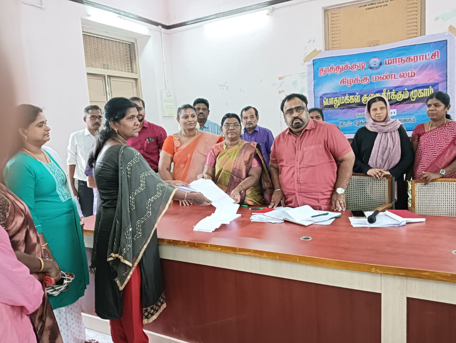 முகாமை தொடங்கி வைத்து துணை மேயர் ஜெனிட்டா பொதுமக்களிடம் மனுக்களை பெற்றுக்கொண்டாா். உதவி ஆணையர் வெங்கட்ராமன், கையெழுத்திட்டு சில உத்தரவுகளை பிறப்பித்தாா். தமிழக முதலமைச்சர் உத்தரவிற்கிணங்க இந்த முகாம் நடைபெறுகிறது. ஏற்கனவே பொதுமக்கள் மாநகராட்சி இணையதளத்தில் தங்களது பதிவுகளை பதிவு செய்து வருகின்றன. அதை முறையாக பார்வையிட்டு அந்த பணிகளும் ஓரு புறம் நடைபெற்று வருகிறது. இருந்தாலும் இந்த குறைதீர்க்கும் முகாமில் பெயர் மாற்றம் முகவாி மாற்றும் பிறப்பு இறப்பு சான்றிதழ்கள் போன்றவைக்கு பொதுமக்கள் கொடுக்கும் மனுக்களுக்கு உடனடியாக தீர்வு காணப்படுகிறது. அதனடிப்படையில் இந்த முகாமில் கொடுக்கப்படும் ஓவ்வொரு மனுக்களையும் முறையாக பதிவு செய்து அதில் கூறப்பட்டுள்ள கருத்துகளுக்கேற்ப நடவடிக்கை மேற்கொள்ளப்படும். சமீபத்தில் அண்ணா பேருந்துநிலையத்தில் விதிமுறைகளை மீறயதாக சீல் வைக்கப்பட்ட கடை உாிமையாளா்கள் வீதிமுறைகளை இனி மீறாத வகையில் செயல்படுவோம் என உறுதிமொழி பத்திரம் வழங்கப்பட்டு அபதார தொகை கட்டுவதாக உறுதியளித்து மனு வழங்கினார்கள்.