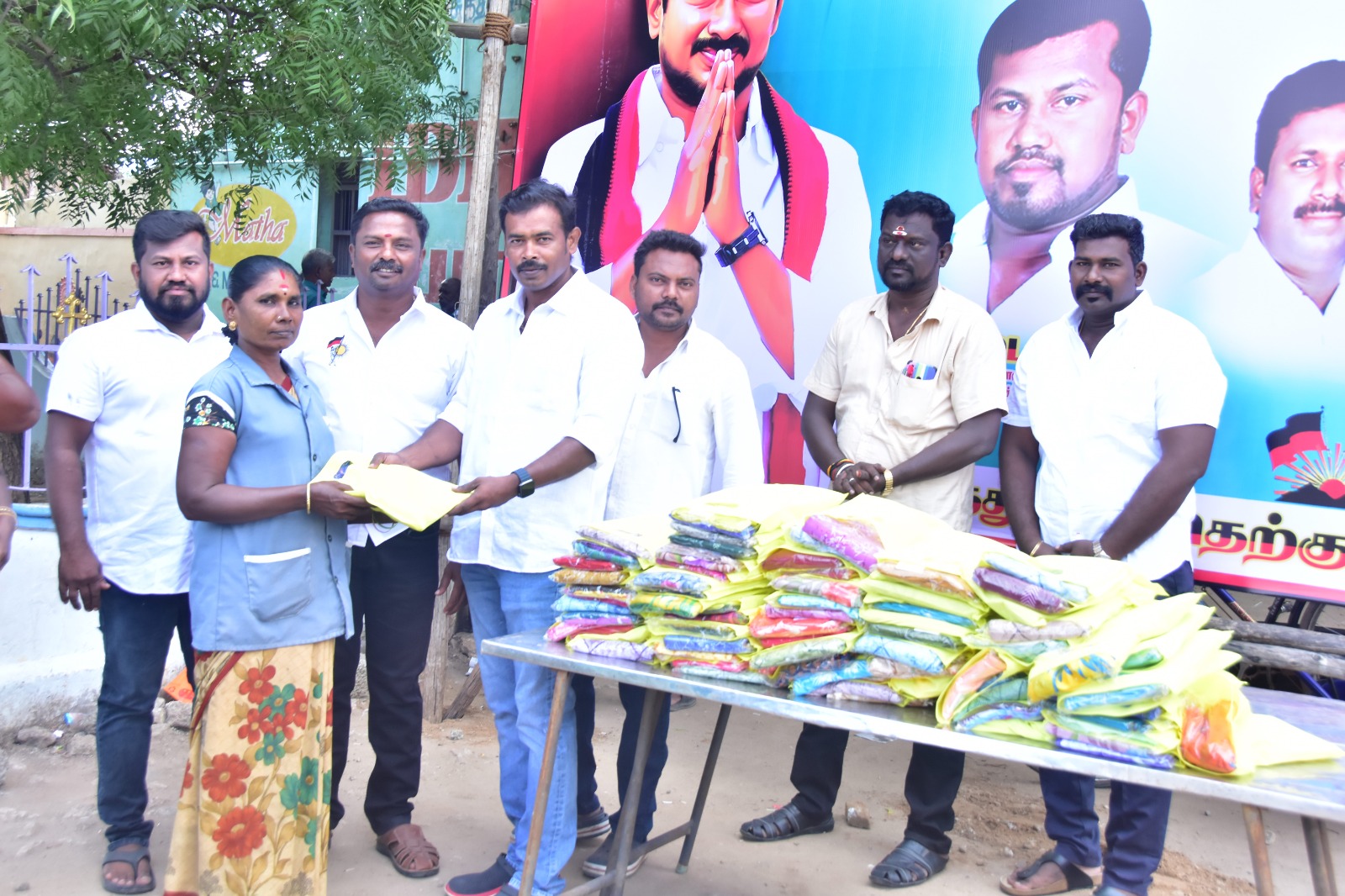 தெற்கு மாவட்ட இளைஞரணி துணை அமைப்பாளரும் மாவட்ட உதயநிதி ரசிகர் மன்ற செயலாளருமான வழக்கறிஞர் பால்துரை மாப்பிளையூரணி ஊராட்சியில் பணிபுரியும் தூய்மை காவலர்கள் 100 பேருக்கு சேலைகளை வழங்கினார்.
