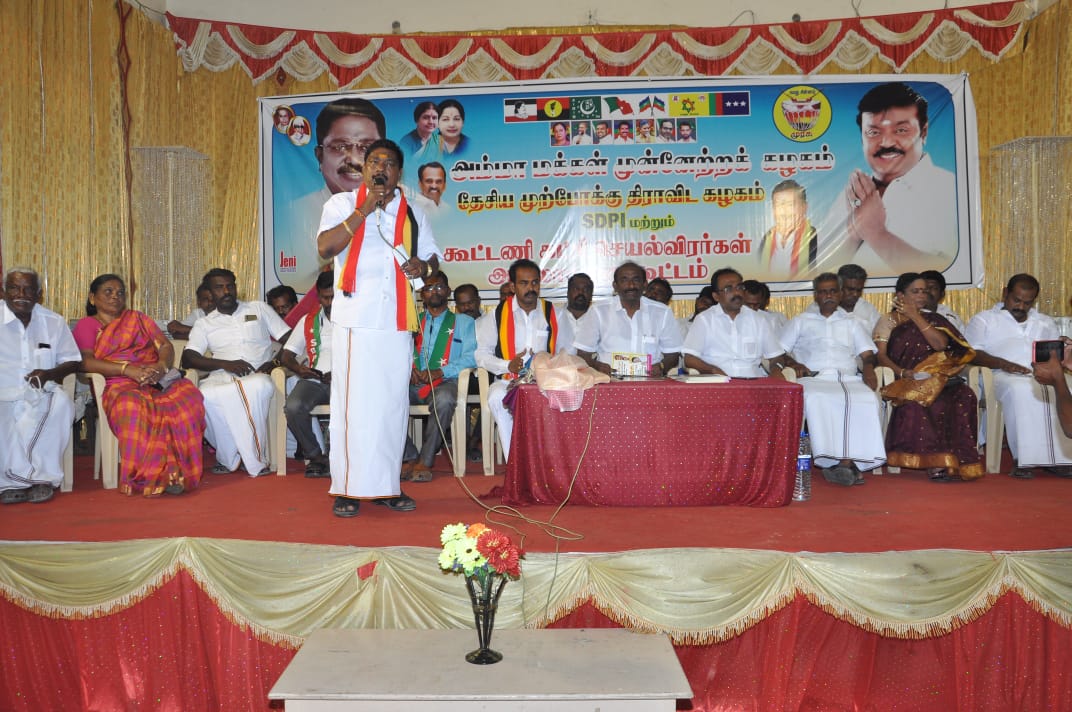 அம்மா மக்கள் முன்னேற்ற கழகம், தேசிய முற்போக்கு திராவிடக் கழகம், SDPI மற்றும் கூட்டணி கட்சி செயல்வீரர்கள் ஆலோசனை கூட்டம் கனி பேலஸ் திருமண மகாலில் நேற்று நடைபெற்றது. இந்தக் கூட்டத்தில்