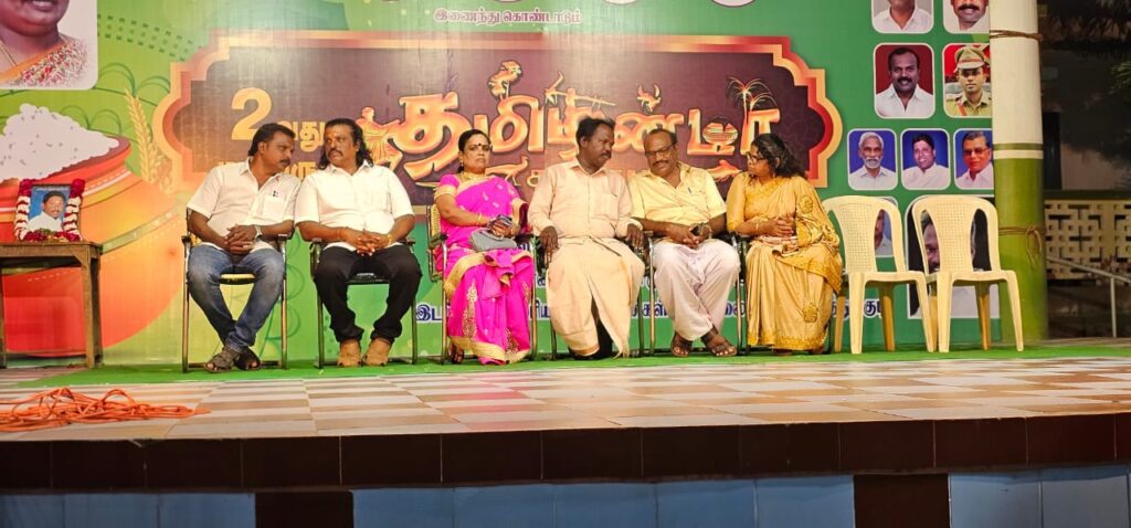 தமிழர் பாரம்பரியமான விளையாட்டு,கலை, உணவு, கலாச்சாரம் ஆகியவற்றை முன்னெடுத்து தமிழன்டா சங்கமம் நிகழ்ச்சி இரண்டாவது வருடமாக நடத்தி வரும் ஜெகஜீவன் அவர்களின் பணி சிறப்பு மிக்கது. பெருந்தலைவர் மக்கள் கட்சி நிறுவனர் மனிதநேயர் என் ஆர் தனபாலன் தன்னுடைய வாழ்த்துச் செய்தியை தமிழன்டா சங்கம் நிகழ்ச்சிக்கு தெரிவிக்க கேட்டுக்கொண்டார் இது போன்ற தமிழ் பாரம்பரிய நிகழ்ச்சிகள் தொடர்ந்து நடத்தி தமிழ் கலாச்சாரத்தை நிலைநாட்ட தமிழன்டா இயக்கம் நிறுவனர் செய்து வரும் எந்த ஒரு நிகழ்ச்சிக்கும் பெருந்தலைவர் மக்கள் கட்சி முழு உறுதுணையாகவும் எமது கட்சி நிர்வாகிகள் முழுமையாக பங்கேற்பார்கள் என்று தனது உரையில் தெரிவித்தார்…