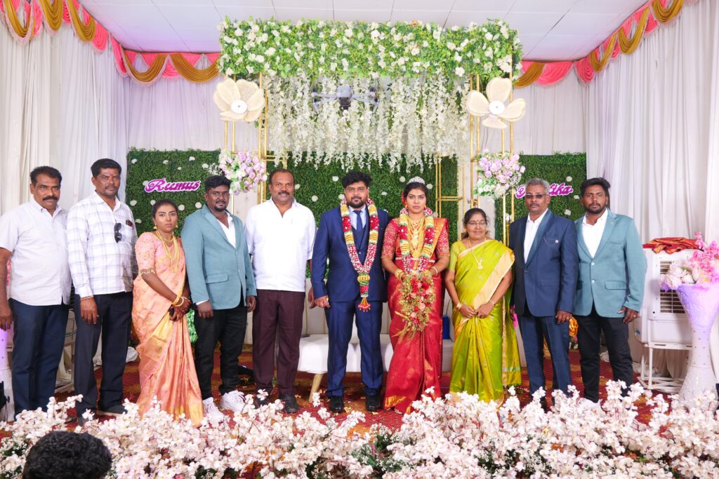 விழாவிற்கு வருகை தந்த அனைவரையும் மணமகன் வீட்டார் சார்பில் சதீஸ்குமார் – ரோஸ்மேரி மற்றும் பிரஸ்கிளப் தலைவர் சண்முகசுந்தரம் ஆகியோர் வரவேற்றனர்.