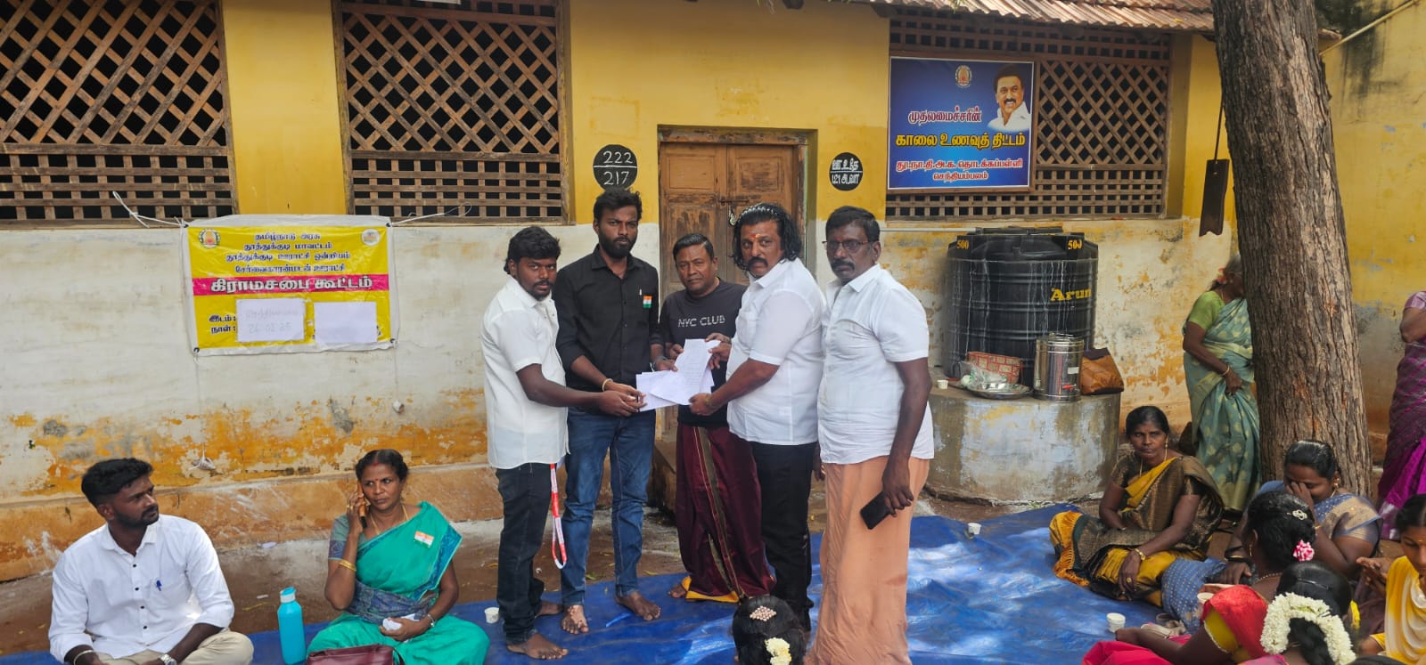 இணைந்து பெருந்தலைவர் மக்கள் கட்சி தூத்துக்குடி மாவட்ட செயலாளர் எஸ் பி மாரியப்பன் தனி அலுவலரிடம் இன்று நடைபெற்ற கிராம சபை கூட்டத்தில் கொடுத்த கோரிக்கை மனு பொதுமக்கள் மத்தியில் மகிழ்ச்சியை ஏற்படுத்தி ஏற்படுத்தி உள்ளது.