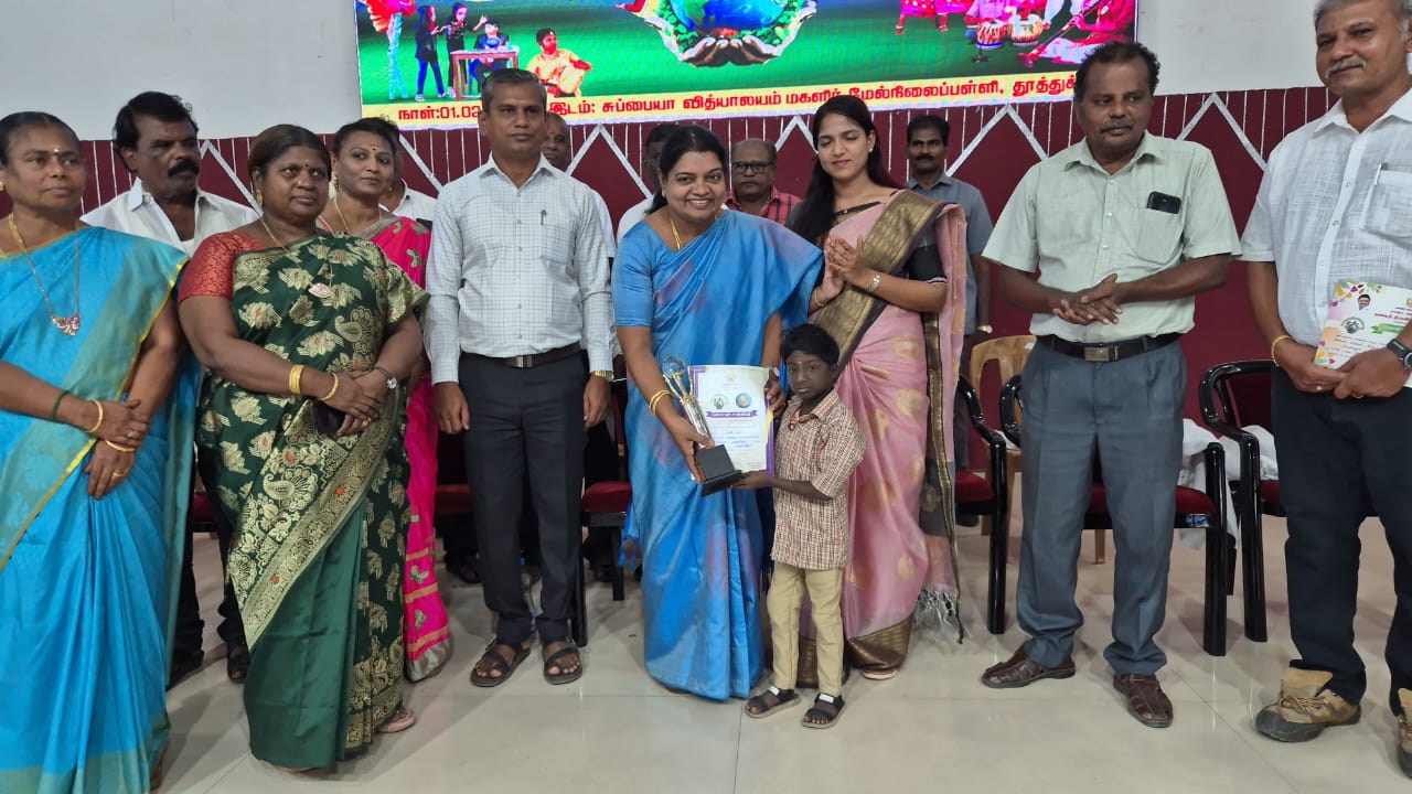 பள்ளிக்கல்வித்துறை சார்பில் ஒருங்கிணைந்த பள்ளிக்கல்வி தூத்துக்குடி மாவட்ட அளவிலான 2024-25ம் ஆண்டிற்கான கலைத்திருவிழா வெற்றிப் பெற்ற மாணவர்களுக்கு பரிசு வழங்கும் விழா சுப்பையா வித்யாலயம் மகளிர் மேல்நிலைப்பள்ளியில் நடைபெற்ற விழாவிற்கு கூடுதல் கலெக்டர் ஊரக வளர்ச்சி ஐஸ்வர்யா தலைமை வகித்தார். முதன்மை கல்வி அலுவலர் கணேஷ்மூர்த்தி வரவேற்புரையாற்றினார்.