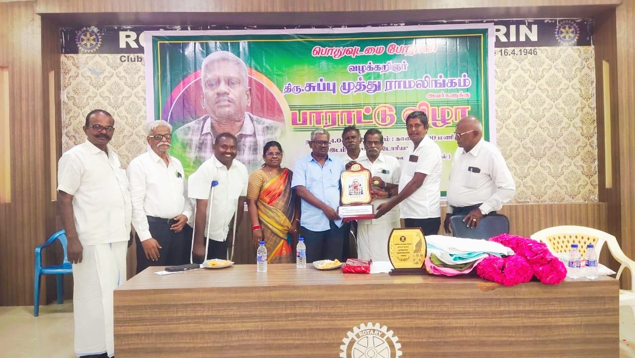 டி.எஸ்.பி இன்ஸ்பெக்டர் உள்ளிட்ட 9 காவலர்களுக்கு ஆயுள் தண்டனை பெற்று தந்த பொதுவுடமை போராளி வழக்கறிஞர் சுப்புமுத்துராமலிங்கம் அவர்களுக்கு தூத்துக்குடி சமூக சேவகர், மாஸ் ஆம்புலன்ஸ் நிறுவனர் தொழிலதிபர்