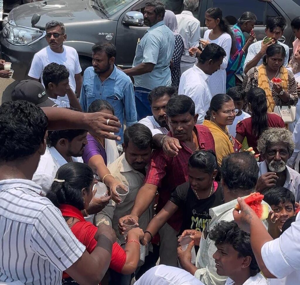 நீர் மோர், மற்றும் தர்பூசணி பழங்களை வழங்கினார். பல்லாயிரக்கணக்கான மக்களுக்கும் வழங்கும் வரை இந்த சுட்டெரிக்கு வெயிலில் அவர் நின்று செய்து வந்த மனிதநேயமிக்க இந்த செயல்களை
