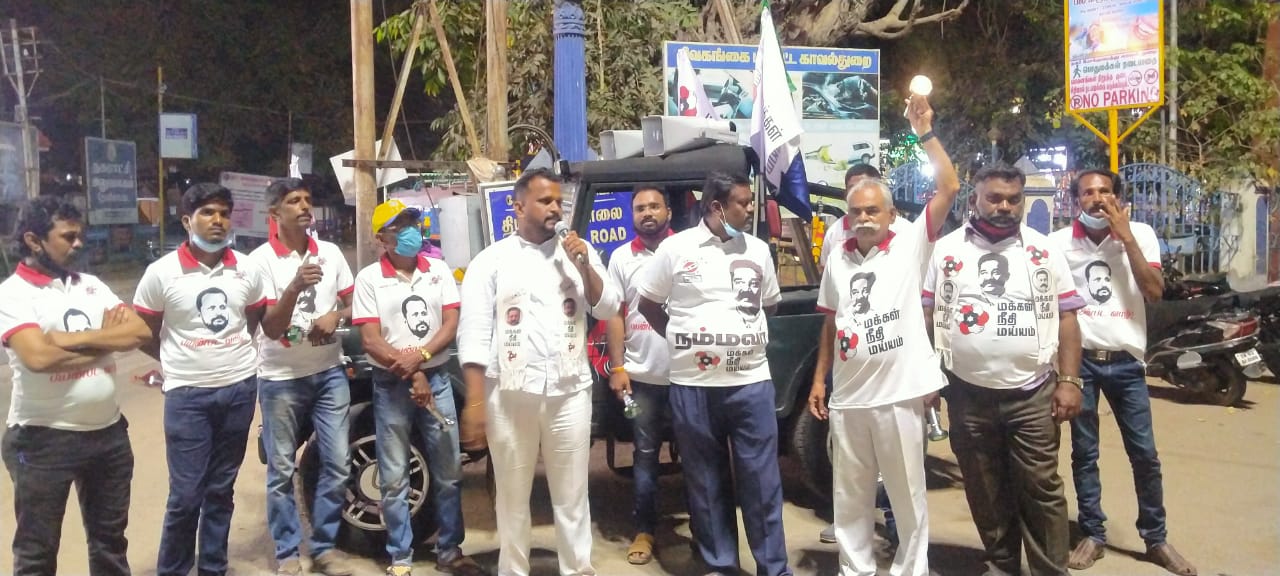 அதனையொட்டி சிவகங்கை மாவட்டம் காரைக்குடியில் சட்டமன்ற தொகுதியில் போட்டியிடும் சமூக ஆர்வலருமான, மக்கள் நீதி மைய வேட்பாளர் ராஜகுமார் தேவகோட்டை நகர் முழுவதும் இன்று மாலை தேர்தல் பிரச்சாரத்தில் ஈடுபட்டார்,அப்போது மக்களின் வீடுகளுக்கு சென்று டார்ச்லைட் சின்னத்தில் வாக்களிக்க வேண்டுமென கூறி வாக்கு சேகரிப்பில் ஈடுபட்டார்,இந்த பிரசாரத்தில் மக்கள் நீதி மய்யம் மாவட்ட தலைவர் மற்றும் முக்கிய நிர்வாகிகளும் கட்சித் தொண்டர்களும் கலந்து கொண்டனர்.