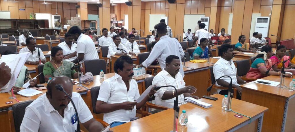 ஒப்பந்த ஊழியர்கள் பணி நீட்டிப்பு கழிப்பறை பராமரிப்பு பணி ஒப்பந்தம் நீட்டிப்பு உள்ளிட்ட 30 அம்ச தீர்மானம் நிறைவேற்றிய பின் மாமன்ற உறுப்பினர்கள் தங்களது பகுதிகளில் நிறைவேற்ற வேண்டிய பணிகள் குறித்து மேயர் ஜெகன்பொியசாமி, ஆணையர் மதுபாலன் ஆகியோரிடம் கோரிக்கை மனு பலர் அளித்தனர். சிலர் பேசுகையில் இதுவரை நிறைவேற்றிய பல பணிகளுக்கு பாராட்டுகளை தெரிவித்துக் கொண்டு நிறைவேற்ற வேண்டிய சில கோரிக்கைகளையும் முன் வைத்தனர்.