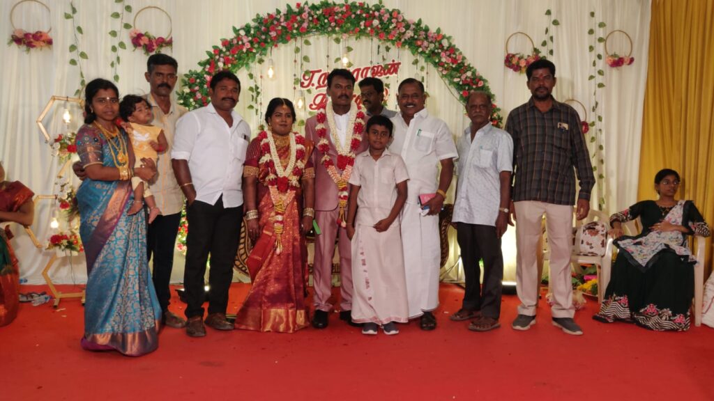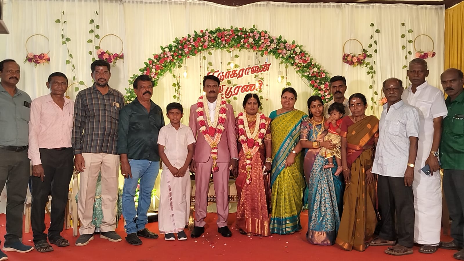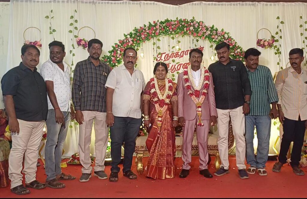 தூத்துக்குடி பிரஸ்கிளப் செயற்குழு உறுப்பினரும் ராஜ் டிவி செய்தியாளருமான மாாிராஜா, இல்லத்திருமண விழா மணமக்கள் நாகராஜன் பூரணி ஆகியோரது திருமணம் சிவன்கோவிலில் நடைபெற்று பின்னா் தனியாா் மண்டபத்தில் நடைபெற்ற வரவேற்பு நிகழ்ச்சியில் வடக்கு மாவட்ட திமுக செயலாளரும் சமூகநலன் மற்றும் மகளிர் உாிமைத்துறை அமைச்சர் கீதாஜீவன், அதிமுக மாநில வா்த்தக அணிசெயலாளரும் முன்னாள் அமைச்சருமான சி.த.செல்லப்பாண்டியன், மாநகர திமுக செயலாளர் ஆனந்தசேகரன், தமிழக வெற்றி கழக பொறுப்பாளர் அஜிதா ஆக்னல், மாநில அதிமுக வர்த்தக அணி துணைச்செயலாளர் மில்லை ராஜா, ஓபிஎஸ் அணி மாவட்ட செயலாளர் ஏசாதுரை, ஐஎன்டியுசி மாநில செயலாளர் பெருமாள் சாமி, மனித நேய மக்கள் கட்சி மாவட்ட பொறுப்பாளர் அகம்மது இக்பால், தொழிலதிபா்கள் பாஸ்கா், பேச்சிமுத்து, அசோக்பொியசாமி சிவன்கோவில் தலைமை அர்ச்சகா் செல்வம்பட்டா், மாவட்ட திமுக பிரதிநிதி சக்திவேல், பகுதி செயலாளர் சுரேஷ்குமாா், முன்னாள் மாவட்ட மொத்த கூட்டுறவு பண்டகசாலை தலைவர்எட்வின்பாண்டியன், முன்னாள் கவுன்சிலர்கள் அகஸ்டின், செல்வராஜ், தெற்கு மாவட்ட அதிமுக மாணவரணி செயலாளர் விக்னேஷ்,