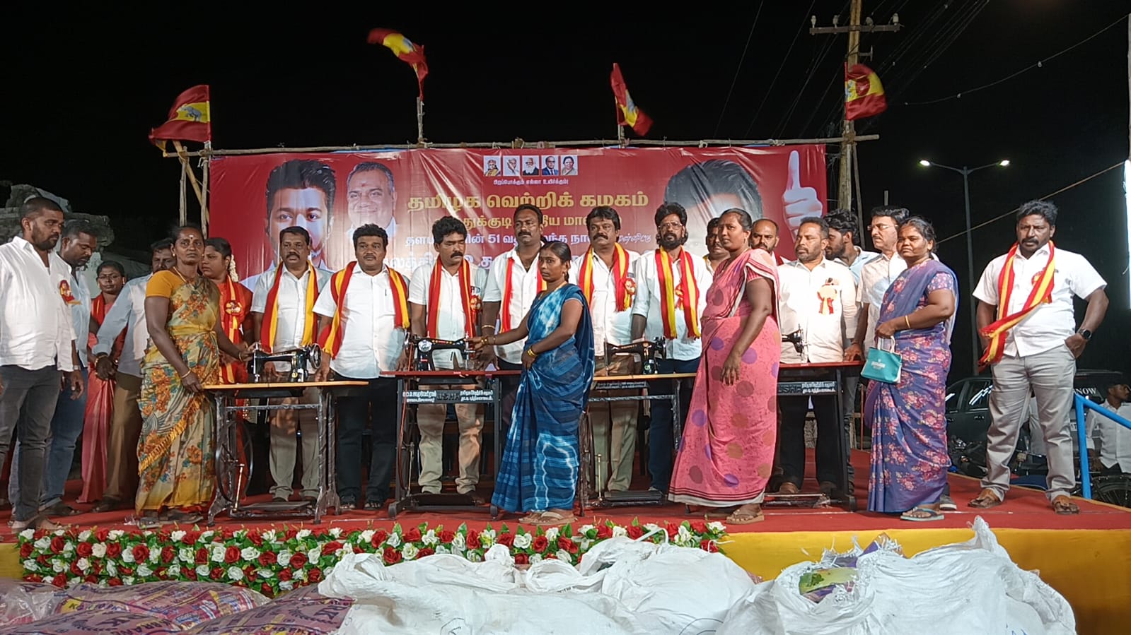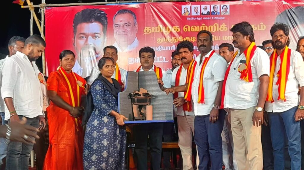 2551 பேருக்கு சுமார் 10 லட்சம் மதிப்பீட்டில் வழங்கப்பட்ட இந்த மெகா நலத்திட்டம் வழங்கும் நிகழ்ச்சி திராவிடக் கட்சிகள் சேர்ந்த நிர்வாகிகள் பலரையும் திரும்பி பார்க்க வைத்தது. அந்த அளவிற்கு மிக பிரம்மாண்டமாக தூத்துக்குடி மாநகர் பகுதிகளில் மேடைகள் அமைத்து நலத்திட்டங்கள் வழங்கி அசத்தினர்.இந்த நிகழ்ச்சியில் பிரபல தொழிலதிபர் சாம் கிஷோர், முன்னாள் மாமன்ற உறுப்பினர் இனைசெயலாளர்கோல்டன் பொருளாளர் சிவகுமார் துனைசெயலாளர் மரியா செயற்குழு உறுப்பினர்கள் சதீஷ்குமார் ஜோஜப் ஆனந்த் மகேஷ்குமார் சுரேஷ்குமார் ஷுடி சித்திரா காயத்திரி தருவைக்குளம் வழக்கறிஞர் கிங்ஸ்டன், தவெக மத்திய மாவட்ட அலுவலக மேலாளர் கனகவேல், சார்மிலி விஜய் சுபாகர் பிரான்சிஸ் ஞானபுஸ்பம் மற்றும்மாவட்ட நிர்வாகிகள் ஒன்றிய மற்றும் கிளைகழக நிர்வாகிகள் கலந்துகொண்டனர்.