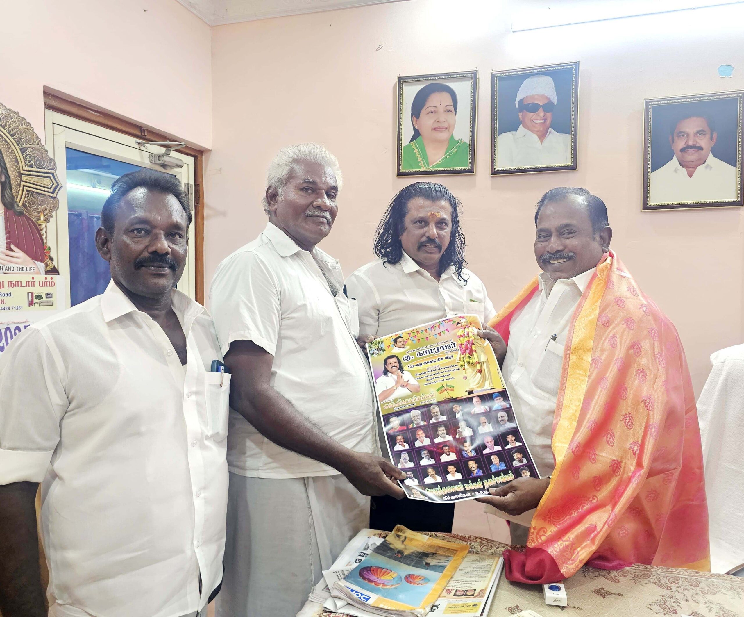 அதன் ஒரு பகுதியாக, முன்னாள் அமைச்சர் அதிமுக மாநில வர்த்தக அணி செயலாளர் சி.த.செல்லப்பாண்டியனை அவரது கட்சி அலுவலகத்தில் நேரில் சந்தித்து பெருந்தலைவர் காமராஜரின் 123-வது பிறந்தநாள் விழாவிற்கு வருகை தருமாறு பெருந்தலைவர் மக்கள் நலச்சங்கம் நிறுவனத் தலைவர் எஸ்.பி.மாரியப்பன் நாடார் அழைப்பிதழ் வழங்கினார். இதில் முன்னாள் தூத்துக்குடி மாவட்ட மீனவரணி செயலாளரும், முன்னாள் மீனவர் கூட்டுறவு சங்க செயலாளரும், அதிமுக முன்னாள் மாமன்ற உறுப்பினருமான அகஸ்டின், பெருந்தலைவர் மக்கள் நலச்சங்க மாநில துணைத்தலைவர் தருவைக்குளம் சண்முகவேல் உள்பட பலர் உடனிருந்தனர்.