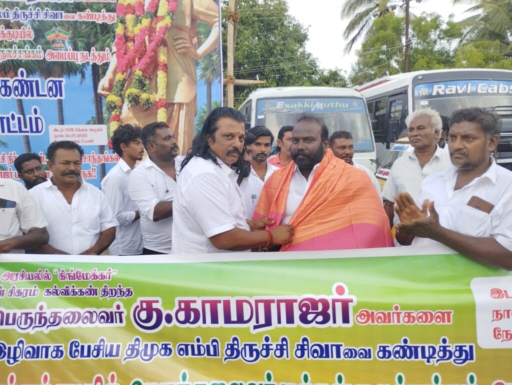 திமுகவின் மாநிலங்களவை உறுப்பினர் திருச்சி சிவா, சமீபத்தில் சென்னை பெரம்பூரில் நடந்த திமுக பொதுக்கூட்டத்தில் பேசியபோது, பெருந்தலைவர் காமராஜர் குறித்து சர்ச்சைக்குரிய கருத்துகளைத் தெரிவித்தார். தமிழகம் முழுவதும் பெரும் பரபரப்பை ஏற்படுத்தியுள்ளது. பல்வேறு அமைப்புகள் திருச்சி சிவாவை கண்டித்தும், அவர் உடனடியாக பதவி விலக கோரி தொடர் போராட்டம் நடத்தி வருகின்றனர்.