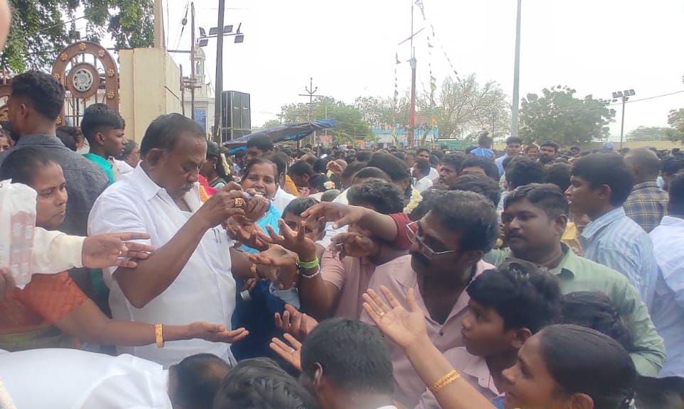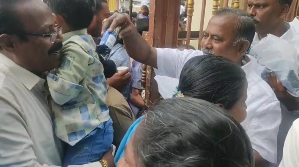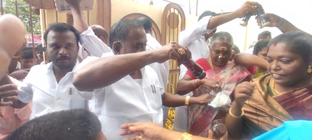 கழக வர்த்தகஅணி செயலாளரும் முன்னாள் அமைச்சருமான சி.த.செல்லப்பாண்டியன்,பால், பழம், மேங்கோ ஜீஸ் பாட்டில்,ரஸனா,பிஸ்கட் பாக்கெட், தண்ணீர் பாட்டில், ஆகியவற்றை வழங்கினார். நீண்ட நேரமாக நின்று பொதுமக்கள் மற்றும் ஆலயத்திற்கு வருகை தந்த பக்தர்களுக்கு குளிர்பானங்களை வழங்கினார் முன்னாள் அமைச்சர். செல்லப்பாண்டியன் அதுபோல் பிரசித்தி பெற்ற பணிமய மாதா ஆலய திருவிழாவிற்கு வருகை தரும் பக்தர்களையும் பொது மக்களையும் வரவேற்கும் வகையில் அதிமுக சார்பில் வர்த்தக அணி நிர்வாகிகள் ஏராளமான இடங்களில் விளம்பரப்பாதைகள் வைத்திருந்தனர். அதிமுக பொதுச்செயலாளர் தமிழக முன்னாள் முதல்வர் எடப்பாடி பழனிச்சாமி அவர்களை ஆகஸ்ட் 1 தேதி பனிமய மாதா ஆலயத்திற்கு வழிபாடு செய்ய முன்னாள் முதல்வர் செல்ல பாண்டியன் அழைத்து வருகிறார் அதற்கான முன்னேற்பாடு பணிகளும் தூத்துக்குடி அதிமுகவினர் சார்பில் முழு வீச்சாக நடைபெற்று வருகிறது.