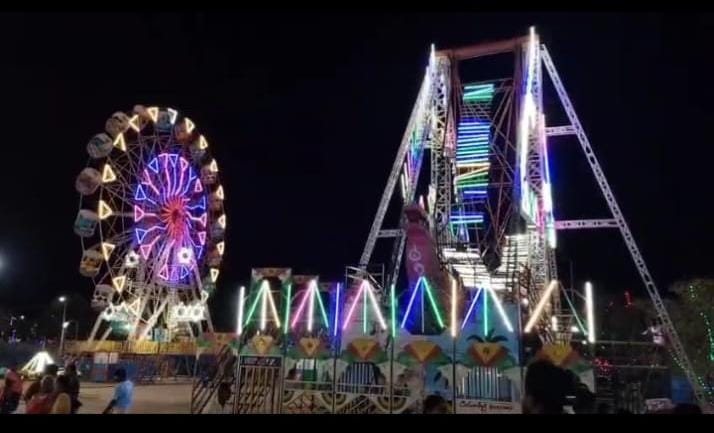 இரவை பகல் போல் காட்சியளிக்கும் வகையில் மின்விளக்குகள் அமைக்கப்பட்டுள்ளது இந்த பொருட்காட்சியில் 30க்கும் மேற்பட்ட ஸ்டால்கள் அமைக்கப்பட்டுள்ளது. பல்வேறு உணவு வகை ஸ்டால்களும் அமைக்கப்பட்டுள்ளன மற்றும் ஜெயின்ட் வில். ரோலர். கோஸ்டர். கப் வீல். கொலம்பஸ். மகாராஜா ட்ரெயின். டோரா. டைட்டானிக். டபுள். டக்கர் கிராஸ்வில். சிலம்பம். கோஸ்டர் உட்பட 25க்கும் மேற்பட்ட ராட்டினங்கள் அமைக்கப்பட்டுள்ளது மேலும் சிறுவர்களுக்கான பைக். கார். போர்ட். பலூன் ஹெலிகாப்டர். மற்றும் பல வகையான சிறுவர்களுக்கான விளையாட்டு சாதனங்கள் இங்கு அமைக்கப்பட்டுள்ளது மரணக்கிணறு என்று அழைக்கப்படும் பைக் ரேஸ் போன்ற விளையாட்டுகளும் உள்ளது. மேலும் இந்தப் பொருட்காட்சிக்கு வரும் வாகன ஓட்டிகள் நான்கு சக்கர வாகனங்கள், இருசக்கர வாகனங்கள் நிறுத்துவதற்கு போதுமான இட வசதி மிகப்பெரிய அளவில் அமைந்துள்ளது. இதற்கான அனைத்து வசதிகளும் சிறப்பாக செய்யப்பட்டுள்ளது அதுபோல குடிநீர் வசதி, கழிப்பறை வசதிகளும் பொது மக்களுக்கு செய்து தரப்பட்டுள்ளது. ஆகையால் வருகிற 17ஆம் தேதி வரை அதாவது இன்னும் மூன்று தினங்கள் மட்டுமே பொருட்காட்சிகள் நடைபெற உள்ளதால் பள்ளி கல்லூரி மாணவ மாணவியர்கள் பயன்பெறுவதற்காகவே இந்த சிறப்பான அதிரடிகளை