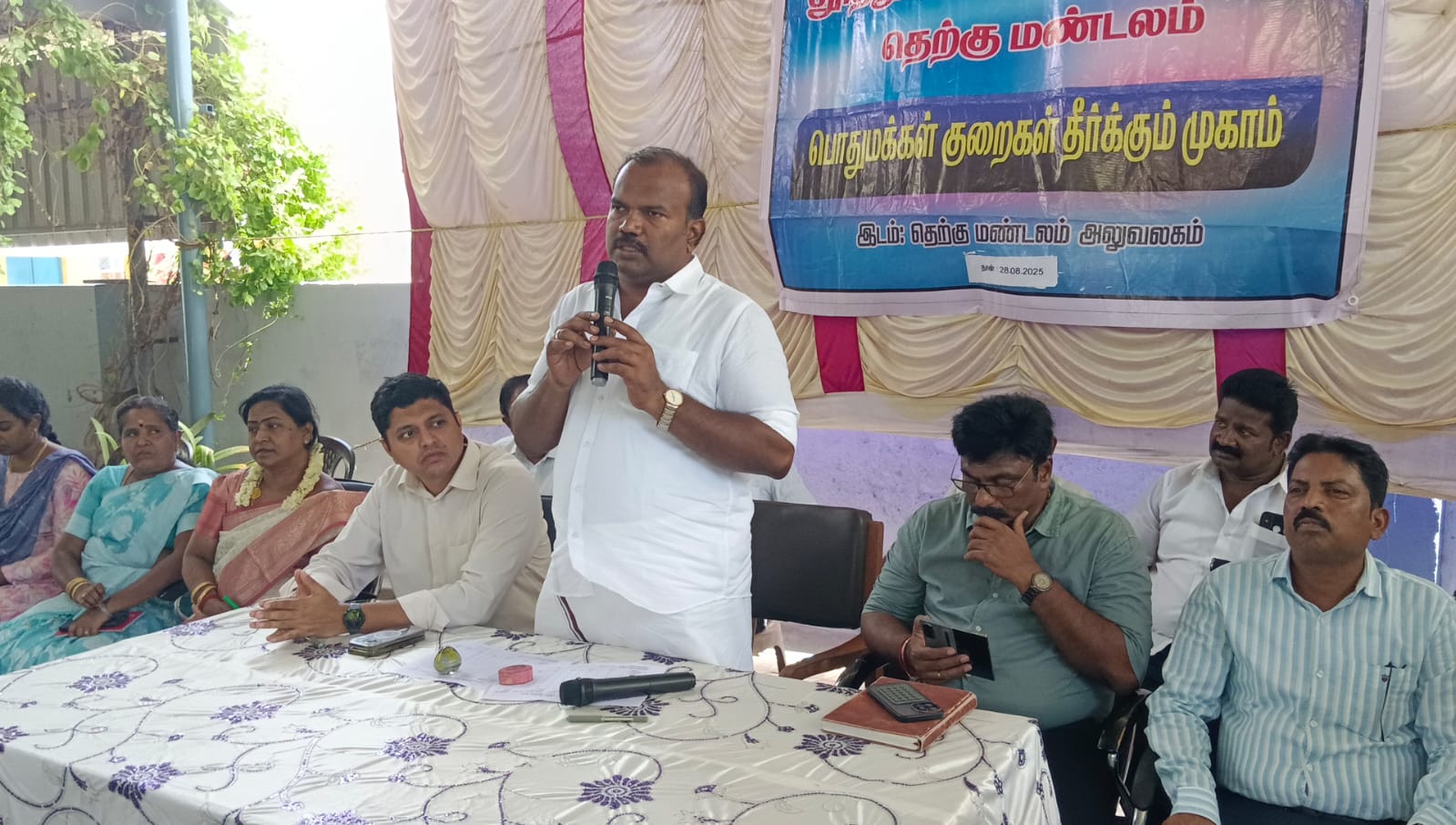 தூத்துக்குடி மாநகராட்சி தெற்கு மண்டல அலுவலத்தில் நடைபெற்ற பொதுமக்கள் குறைதீர்க்கும் முகாமிற்கு மேயர் ஜெகன்பெரியசாமி தலைமை வகித்தார். ஆணையா் பானோத் ம்ருந்கேந்தா்லால் முன்னிலை வகித்தாா்.
