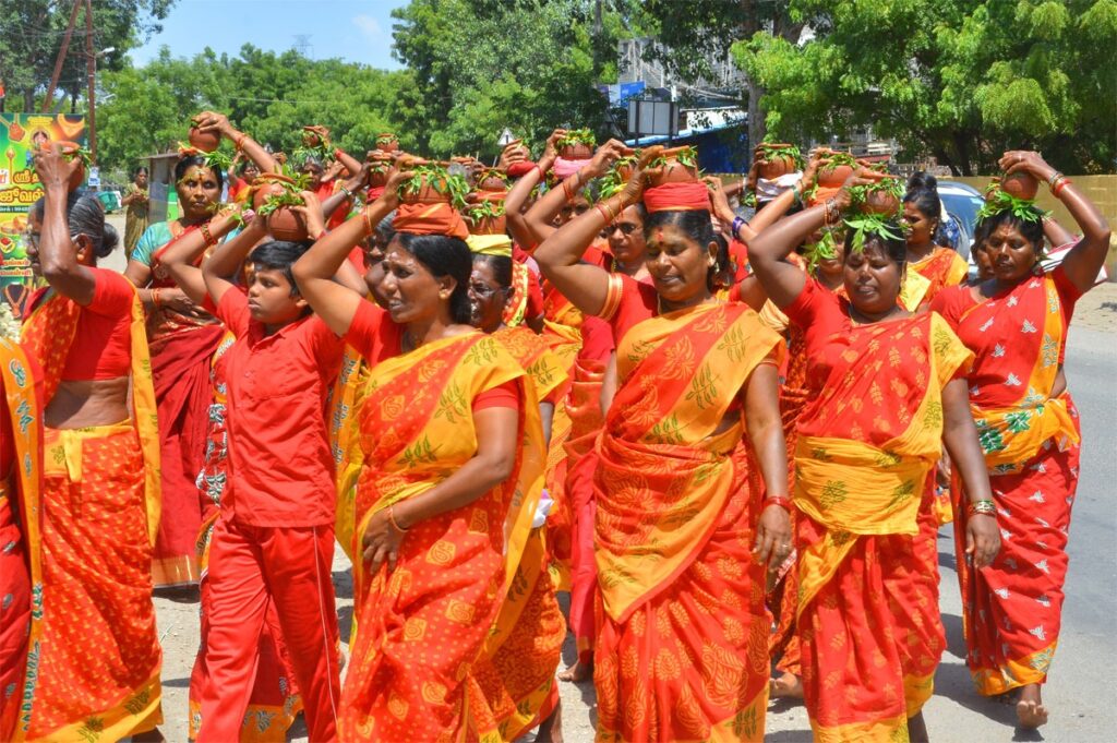 எட்டையாபுரத்தில் ஆன்மிக குரு பங்காரு அடிகளாரின் 85வது அவதார பெருவிழாவை முன்னிட்டு ஆதிபராசக்தி வழிபாட்டு மன்றம் சார்பில் கஞ்சி கலயம், அக்னிசட்டி, பால் குடம் ஊர்வலம் நடைபெற்றது.