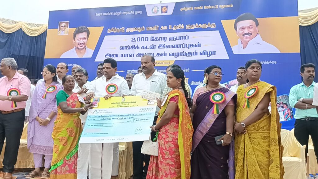 இதனையடுத்து, தமிழ்நாடு மாநில ஊரக/நகர்புற வாழ்வாதார இயக்கம் தூத்துக்குடி மாவட்டம் சார்பில் மகளிர் சுயஉதவிக்குழுக்களுக்கு கடனுதவி மற்றும் நலத்திட்ட உதவிகள் வழங்கும் விழா மாநகராட்சி மாநாட்டு மையத்தில் நடைபெற்றது. கூடுதல் ஆட்சியர் வளர்ச்சி ஐஸ்வர்யா தலைமை வகித்தார். மாநகராட்சி ஆணையர் பிரியங்கா முன்னிலை வகித்தார். தமிழ்நாடு மாநில ஊரக/நகர்புற வாழ்வாதார இயக்கம் இணை இயக்குநர்/திட்ட இயக்குநர் நாகராஜன் வரவேற்புரையாற்றினார். 1020 சுயஉதவிக்குழுக்களுக்கு 85.365 கோடியில் நலத்திட்ட உதவிகள் வழங்கி அமைச்சர் அனிதா ஆர்.ராதாகிருஷ்ணன் பேசுகையில்: தமிழக முதலமைச்சர் மு.க.ஸ்டாலின் ஆணையின்படி இந்த விழா நடைபெறுகிறது. ஒரு காலத்தில் ஆண்கள் துணையுடன் தான் பெண்கள் இருக்க வேண்டும். அந்த துணை இல்லாமல் இருக்க முடியாது என்ற காலத்தை மாற்றி கிராமம், நகரம் பகுதியில் உள்ள பெண்கள் கலைஞர் ஆட்சியில் தொடங்கிய மகளிர் சுயஉதவிக்குழுக்கள் இன்றைய தினம் முதலமைச்சர் ஸ்டாலின், துணை முதலமைச்சர் உதயநிதி ஸ்டாலின் காலத்தில் எல்லா வகையிலும் பெண்கள் வளர்ச்சி அடைந்து உயர வேண்டும் என்பதை மட்டும் கருத்தில் கொண்டு மகளிர் சுயஉதவிக்குழு வங்கியில் கடன் வழங்கப்பட்டால் பெண்கள் கொடுக்கல் வாங்கலில் சரியாக இருப்பார்கள் என்ற நம்பிக்கை ஏற்பட்டுள்ளது. அதன் மூலம் புதிய தொழில்கள் புரிவதற்கு இந்த அரசும் பல்வேறு திட்டங்களை வகுத்து கொடுக்கின்றன. அதன்படி பல மகளிர் சுயஉதவிக்குழுக்கள் ஆண்களை நம்பி இல்லாமல் எண்ணற்ற தொழில்களை சுயமாக செய்து குடும்ப பொருளாதார உயர்வுக்கு காரணமாக கலைஞர் வித்திட்ட விதை இன்று எல்லோரும் உயர வேண்டும். எல்லாத் தொழிலையும் செய்ய வேண்டும் என்று தமிழக முதலமைச்சர் மு.க.ஸ்டாலின் வழிகாட்டியுள்ளார். மகளிர்களுக்கு உரிமைத்தொகை விடியல் பயணம் என்று எல்லா துறைகளிலும் பெண்கள் வளர்ச்சியடைந்து முன்னேறியுள்ளார்கள். இந்த நிகழ்ச்சியில் கனிமொழி எம்.பியும், அமைச்சர் கீதாஜீவனும் கலந்து கொள்வதாக இருந்தது. சென்னையில் வேலைப் பளு இருந்த காரணத்தினால் வர இயலவில்லை. நாங்கள் இங்கு வந்துள்ளோம். மகளிர் சுயஉதவிக்குழு வளர்ச்சிக்கு காரணமான திமுக அரசுக்கும், தளபதியாருக்கும் பக்கபலமாக இருக்க வேண்டும் என்று பேசினார்.