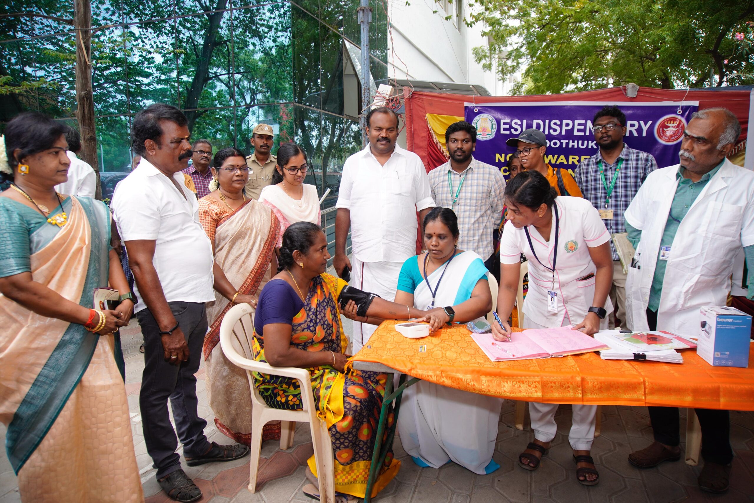 தொழிலாளர் அரசு காப்பீட்டுக் கழகம் இ.எஸ்.ஐ. திட்டத்தின் கீழ் வழங்கப்படும் அட்டையாள அட்டை ஸ்மார்ட் கார்டுகளை வழங்கி மேயர் ஜெகன் பெரியசாமி பேசுகையில்: கடந்த ஓராண்டுகளுக்கு முன் அட்டையாள அட்டை வழங்கும் பணியை கனிமொழி எம்.பி துவங்கி வைத்தார். அப்போது 3160 பேருக்கு வழங்கப்பட்டது. இதில் பதிவு செய்யப்பட்ட அனைவருக்கும் பல்வேறு நன்மைகளும் சலுகைகளும் கிடைக்கின்றன. தாட்கோவில் பதிவு செய்து அதிலும் தொழில் கடனாக ரூ.50 ஆயிரம் வரை பெற்றுக் கொள்வதற்கு தமிழக முதலமைச்சர் மு.க.ஸ்டாலின் உத்தரவிட்டுள்ளார். நமது மாநகராட்சியில் உள்ள தூய்மைப்பணியாளர்களுக்கும் எல்லா நன்மைகளும் கிடைக்க வேண்டும் என்ற அடிப்படையில் நானும் ஆணையரும் கலந்து பேசி இந்த முகாம் இங்கு ஏற்பாடு செய்யப்பட்டு நடைபெறுகிறது. இஎஸ்ஐ மருத்துவமனை கடந்த 7, 8 ஆண்டுகளாக கிடப்பில் கிடந்ததை கனிமொழி எம்.பி. முயற்சியினால் 100 கோடி மதிப்பில் தனியார் மருத்துவமனை தரத்திற்கு இணையாக கட்டப்பட்டு வருகிறது. சிகிச்சையும் அதேபோல் இருக்கும். தற்போது இஎஸ்ஐ மருத்துவமனை கடற்கரை சாலையில் இருந்து வருகிறது. அங்கு சத்துமாத்திரை வாங்கி உட்கொள்வதன் மூலம் நமக்கு ஆரோக்கியம் கிடைக்கும். நோய் எதிர்ப்பு சக்தியும் வரும். எல்லோரும் சமம் என்பதை கருத்தில் கொண்டு உங்களுக்கான உடை, கையுறை ஆகியவற்றை எல்லாம் முறையாக நம்முடைய தொழிலாளர்களுக்கு வழங்கப்படும். பதிவு செய்யாமல் இருந்தால் பணியாளர்கள் பதிவு செய்து கொள்ள வேண்டும். இந்த தூத்துக்குடி மாநகராட்சி முன்மாதிரியான மாநகராட்சியாக செயல்படுகிறது என்று பேசினார். பின்னா் மருத்துமுகாமை தொடங்கி வைத்தாா்.