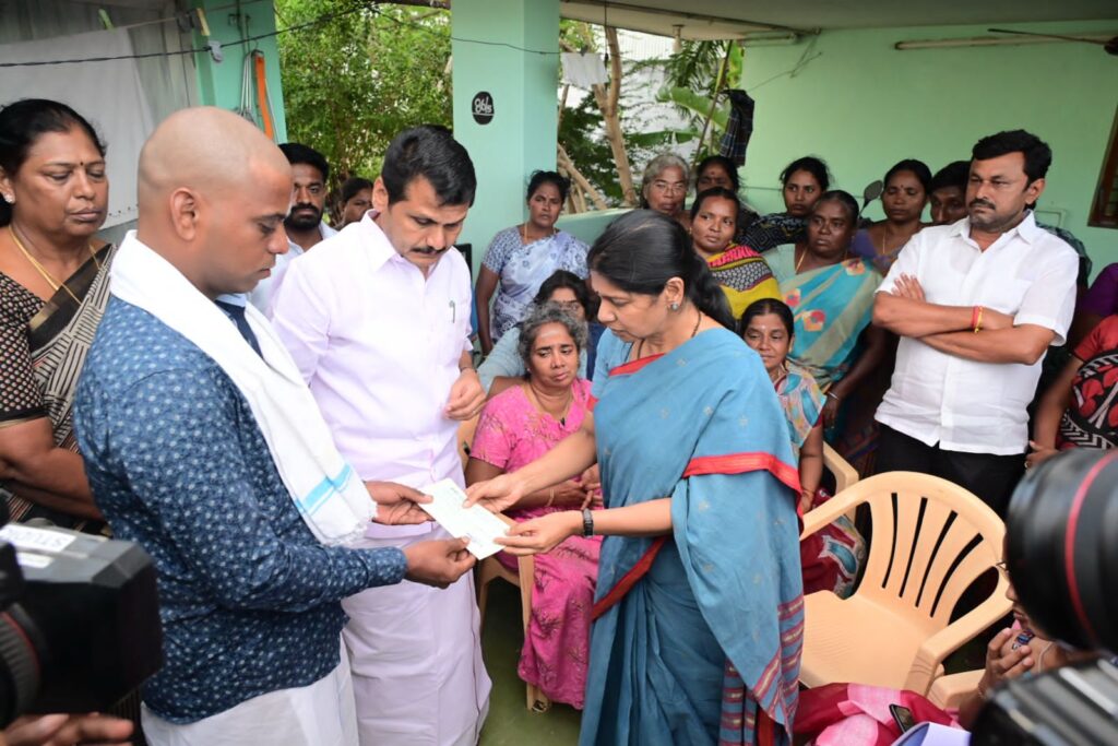அவரது வழியில் துணை முதலமைச்சர் உதயநிதிஸ்டாலினும் நோில் சென்று ஆறுதல் கூறி வந்த நிலையில் பல அமைச்சர்கள் அதிகாாிகள் முழுவீச்சில் களத்தில் நின்று பணியாற்றிய நிலையில் திமுக துணைப்பொதுச்செயலாளரும் தூத்துக்குடி தொகுதி எம்.பியுமான கனிமொழி கரூருக்கு நோில் சென்று உயிாிழந்த அனைத்து குடும்பங்களுக்கும் நோில் சென்று அரசின் சாா்பில் அறிவிக்கப்பட்ட நிதி உதவிகளை அளித்து பாதிக்கப்பட்டுள்ள அனைவரையும் பாா்வையிட்டு ஆறுதல் கூறி மருத்துவ துறை அதிகாாிகளை நல்லமுறையில் எல்லோருக்கும் சிகிச்சை அளிக்க வேண்டும் என்று உத்தரவிட்டு சுமாா் 4 மணி நேரமாக தமிழக முதலமைச்சர் முக.ஸ்டாலின் உத்தரவிற்கிணங்க அவரது எண்ண ஓட்டத்தை நிறைவேற்றும் வகையில் கடமை உணா்வோடு பணியாற்றியதை கட்சிக்கு அப்பாற்பட்டு சமூக ஆர்வலா்களும் பொதுமக்களும் பாராட்டும் வகையில் அமைந்தது. இதே போன்று தான் 2021ல் ஏற்பட்ட கொேரானா காலக்கட்டத்தில் முழுமையான தடை உத்தரவு அமுலில் இருந்த காலத்தில் சென்னையிலிருந்து வாகனம் மூலம் தூத்துக்குடிக்கு வருகை தந்து பொதுமக்கள் நலன் கருதி பணியாற்றியதையும் அதன் பின் ஏற்பட்ட மழை வௌ்ளம் பாதித்த பகுதிகளில் டிராக்டர் படகில் சென்று பாா்வையிட்டு பொதுமக்களுக்கு ஆறுதல் கூறியதையும் பல்ேவறு உதவிகள் செய்ததையும் மக்கள் பாராட்டி வருவதற்கு தன்னுடைய உழைப்பை முழுமையாக அா்ப்பனிப்போடு செய்துவருகிறாா். அவருக்கு அமைச்சர்கள் கீதாஜீவன் அனிதா ராதாகிருஷ்ணன் மேயா் ஜெகன் பொியசாமி உள்ளிட்ட அதிகாாிகள் முழு ஓத்துழைப்போடு திமுகவிற்கு வலுசோ்க்கும் வகையில் துணை பொதுச்செயலாளரின் பணிகள் அமைந்துள்ளது. என்பது குறிப்படதக்கது.