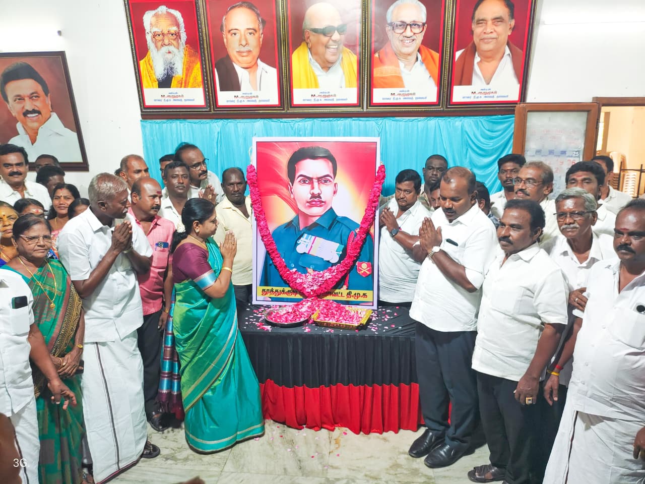 இம்மானுவேல் சேகரனின் 101வது பிறந்த நாளை முன்னிட்டு வடக்கு மாவட்ட திமுக சார்பில் எட்டையாபுரம் சாலையில் உள்ள கலைஞர் அரங்கில் அலங்கரிக்கப்பட்ட அவரது திருவுருவ படத்திற்கு வடக்கு மாவட்ட திமுக செயலாளரும் சமூகநலன் மற்றும் மகளிர்; உரிமைத்துறை அமைச்சர் கீதாஜீவன் மலர் தூவி மரியாதை செலுத்தினார்.