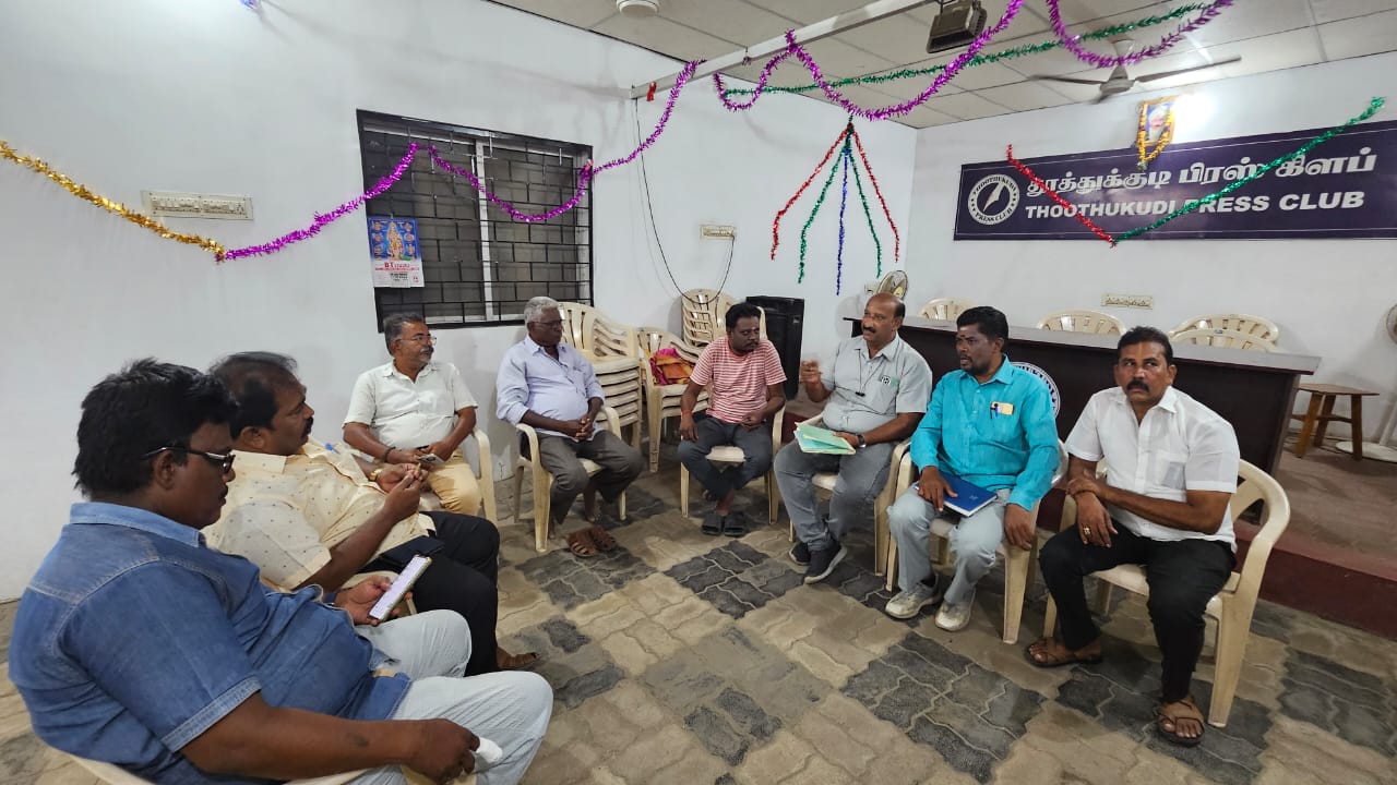 தூத்துக்குடி பிரஸ் கிளப் செயற்குழு கூட்டம் தலைவர் சண்முகசுந்தரம் தலைமையில் நடைபெற்றது. செயலாளர் மோகன்ராஜ் வரவேற்புரையாற்றினார். தொடர்ந்து பத்திரிக்கை மற்றும் செய்தியாளர்களுக்கு அரசு சார்பில் பல்வேறு மாவட்டங்களில் பத்திரிக்கையாளர்களுக்கு நான்கு கட்டங்களாக வழங்கப்பட்டுள்ள நிலையில், தூத்துக்குடி பத்திரிகையாளர்களுக்கு கடந்த 30 ஆண்டுகளுக்கு மேலாக அரசின் சலுகை விலை வீட்டுமனை அரசு வழங்குவதில் ஏற்பட்டுள்ள தாமதம் குறித்தும், இதுவரை எடுக்கப்பட்ட நடவடிக்கைகள் குறித்தும் நிர்வாகிகள் எடுத்துரைத்தனர்.பல்வேறு விவாதங்களுக்குப் பிறகு இது குறித்து அக்டோபர் 23ஆம் தேதி தமிழக முதல்வர் மற்றும் மாநில அரசின் கவனத்தை ஈர்க்கும் வகையில் கவனயீர்ப்பு ஆர்ப்பாட்டம் தூத்துக்குடி பிரஸ் கிளப் அலுவலகம் முன்பு நடத்த அனுமதி கடிதம் சம்பந்தப்பட்ட காவல் நிலையம் மற்றும் மாவட்ட காவல் கண்காணிப்பாளர் மற்றும் மாவட்ட ஆட்சியரிடம் அனுமதி கடிதம் கொடுக்க கூட்டத்தில் தீர்மானிக்கப்பட்டது.மேலும் வரும் தீபாவளிக்கு கடந்த ஆண்டு போல ஸ்பான்சர் மூலம் உறுப்பினர்களுக்கு *தீபாவளி தொகுப்புகள்* சிறப்பாக வழங்க கூட்டத்தில் தீர்மானம் செய்யப்பட்டது.சங்கத்தில் புதிய உறுப்பினர்கள் சேர்க்கை குறித்து அவர்கள் பணி தன்மை ஆராய்ந்து வரும் பொதுக்குழு ஒப்புதலுடன் சங்கத்தில் சேர்ப்பதற்கு இக்கூட்டத்தில் முடிவு செய்யப்பட்டது.இன்றைய கூட்டத்தில் பொருளாளர் ராஜு, துணைத் தலைவர் சிதம்பரம், கௌரவ ஆலோசகர்கள் பாலகிருஷ்ணன், ஆத்திமுத்து மற்றும் செயற்கு உறுப்பினர்கள் குமார், கண்ணன், முத்துராமன், ராஜன் உட்பட செயற்குழு உறுப்பினர்கள் பலர் கலந்து கொண்டனர்