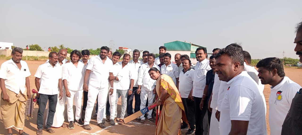 தமிழ்நாடு துணை முதல்வர் உதயநிதி ஸ்டாலின் பிறந்தநாளையொட்டி தூத்துக்குடியில்115 அணிகள் பங்கேற்கும் மாபெரும் கிாிக்கெட் திருவிழா : அமைச்சர் கீதாஜீவன் பேட்டிங் செய்து தொடங்கி வைத்தாா்.