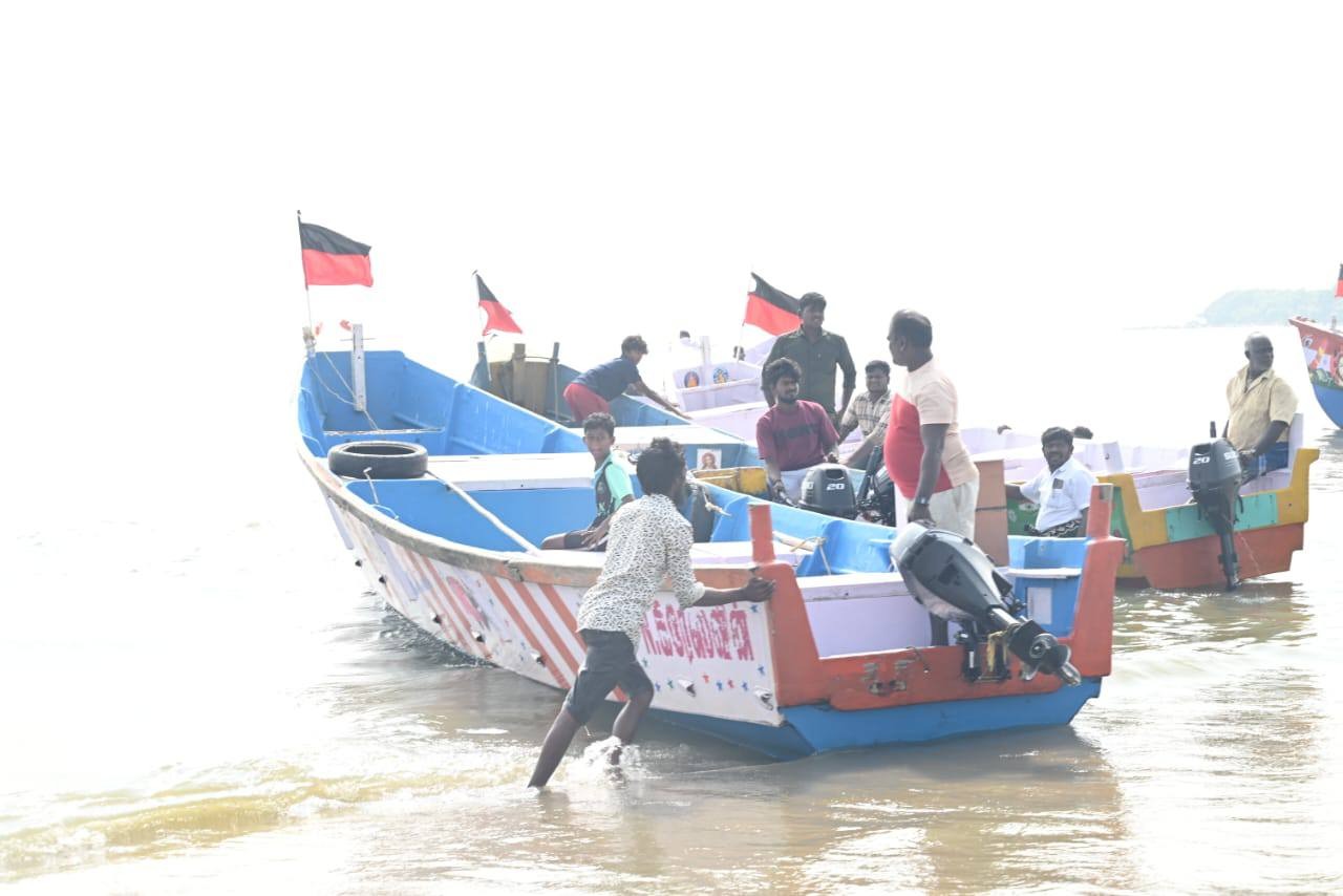 தூத்துக்குடி வடக்கு மாவட்ட திமுக மீனவரணி சாா்பில் வரும் 21ம் தேதி உலக மீனவா் தினத்தை முன்னிட்டு முத்துநகா் கடற்கரையில் நடைபெற்ற படகு போட்டியில் 14 படகுகள் கலந்து கொண்ட போட்டியை வடக்கு மாவட்ட திமுக செயலாளரும் சமூகநலத்துறை அமைச்சர் கீதாஜீவன் மேயா் ஜெகன் பொியசாமி ஆகியோா் தொடங்கி வைத்தனா்.