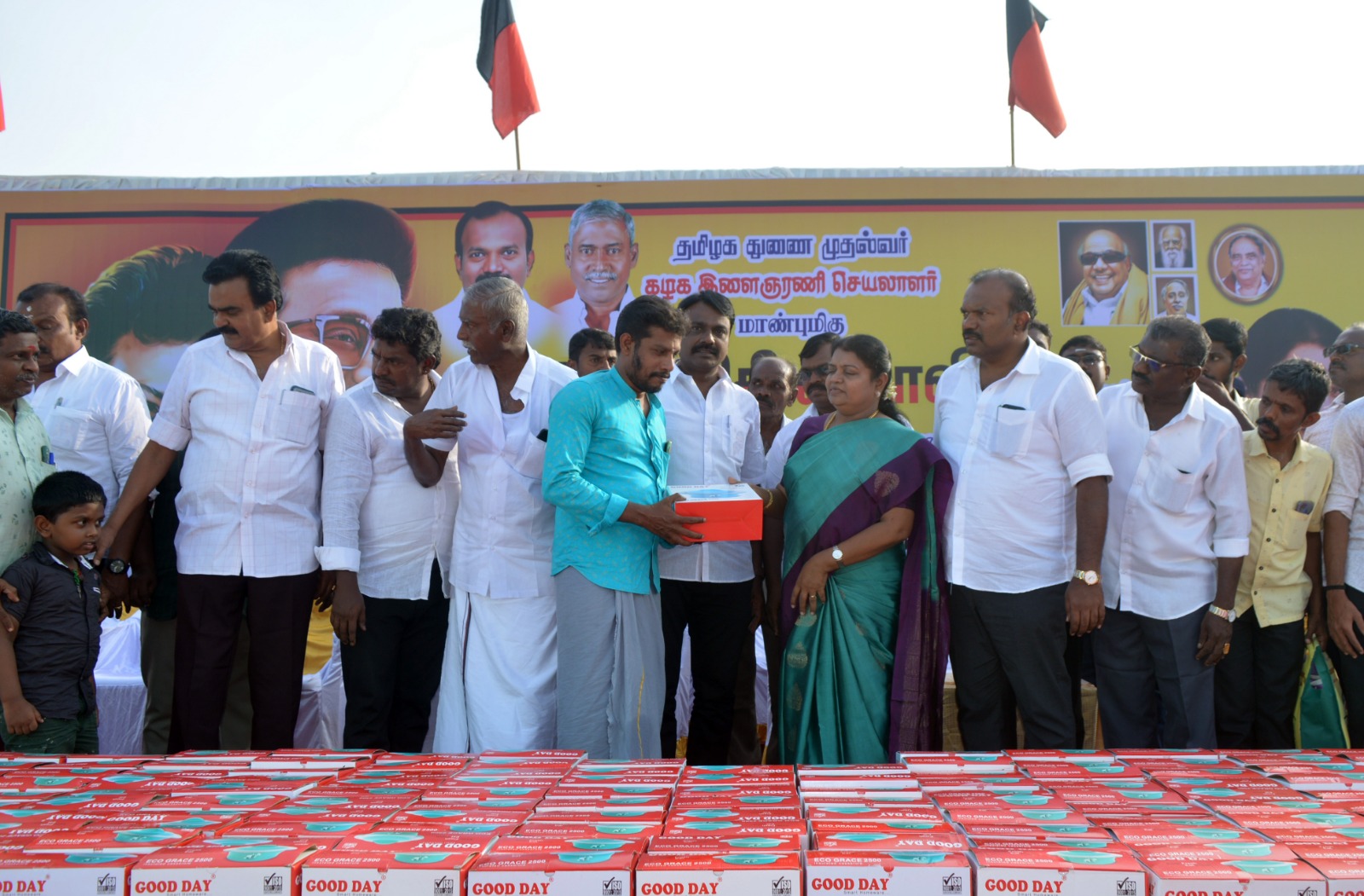 தூத்துக்குடி மாநில திமுக இளைஞர் அணி செயலாளரும் துணை முதலமைச்சருமான உதயநிதி ஸ்டாலின் 49வது பிறந்தநாளையொட்டி வடக்கு மாவட்ட திமுக இளைஞர் அணி ஏற்பாட்டில் 20வாா்டு இளைஞர் அணி சாா்பில் நடைபெற்ற நலத்திட்ட உதவிகள் வழங்கும் விழாவிற்கு வடக்கு மாவட்ட திமுக செயலாளரும் சமூகநலன் மற்றும் மகளிா் உாிமைத்துறை அமைச்சர் கீதாஜீவன், தலைமை வகித்தாா். மேயா் ஜெகன் பொியசாமி மாநகர திமுக செயலாளர் ஆனந்தசேகரன், வட்டச்செயலாளர் ரவீந்திரன், ஆகியோா் முன்னிலை வகித்தனா் மாவட்ட பிரதிநிதி நாராயணன், வரவேற்புரையாற்றினாா்.