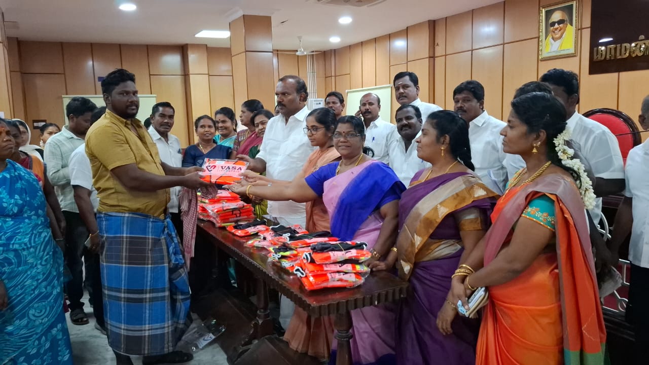 இந்நிலையில், தூய்மை பணியாளா்களுக்கு தேவையான கையுறை பாதுகாப்பு உடைகள் உபகரணங்களை மாநகராட்சி அலுவலகத்தில் உள்ள கூட்டஅரங்கில் மேயா் ஜெகன் பொியசாமி ஆணையா் ப்ாியங்கா, ஆகியோா் வழங்கி பேசுகையில் மாநகராட்சி பொறுத்தவரையில் 60 வாா்டுகளிலும் தினசாி 120 டன் குப்பைகள் சேகாிக்கப்படுகின்றன. அதில் மக்கும் குப்பை மக்காத குப்பை என்று தரம் பிாித்து வெயில் மழை என இரு காலக்கட்டத்திலும் பொருட்படுத்தாமல் பணியாற்றுகிறீர்்கள் இதற்கெல்லாம் மேலே ஓரு படி சொல்ல வேண்டும் என்றால் கொரோனா காலக்கட்டத்தில நீங்கள் ஆற்றிய பணிகள் போற்றுதலுக்குாியது. தமிழக முதலமைச்சர் மு.க.ஸ்டாலின் உத்தரவிற்கிணங்க அடுத்த மாதம் முதல் மாநகராட்சி பகுதியில் 30 இடங்களில் 3 ேவளை உணவுகள் வழங்கப்பட இருக்கிறது. பொது நலனில் இருந்து நாங்கள் பணியாற்றுவதை போல் மக்கள் நலனின் கவனம் செலுத்தி மனித நேயத்தோடு பணியாற்றும் அனைவரையும் பாராட்டுகிறோம். என்று பேசினாா்கள்.