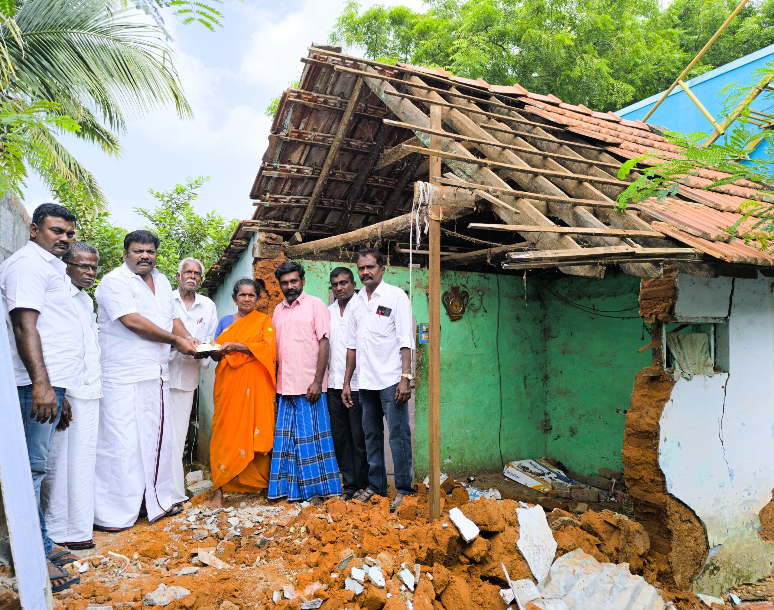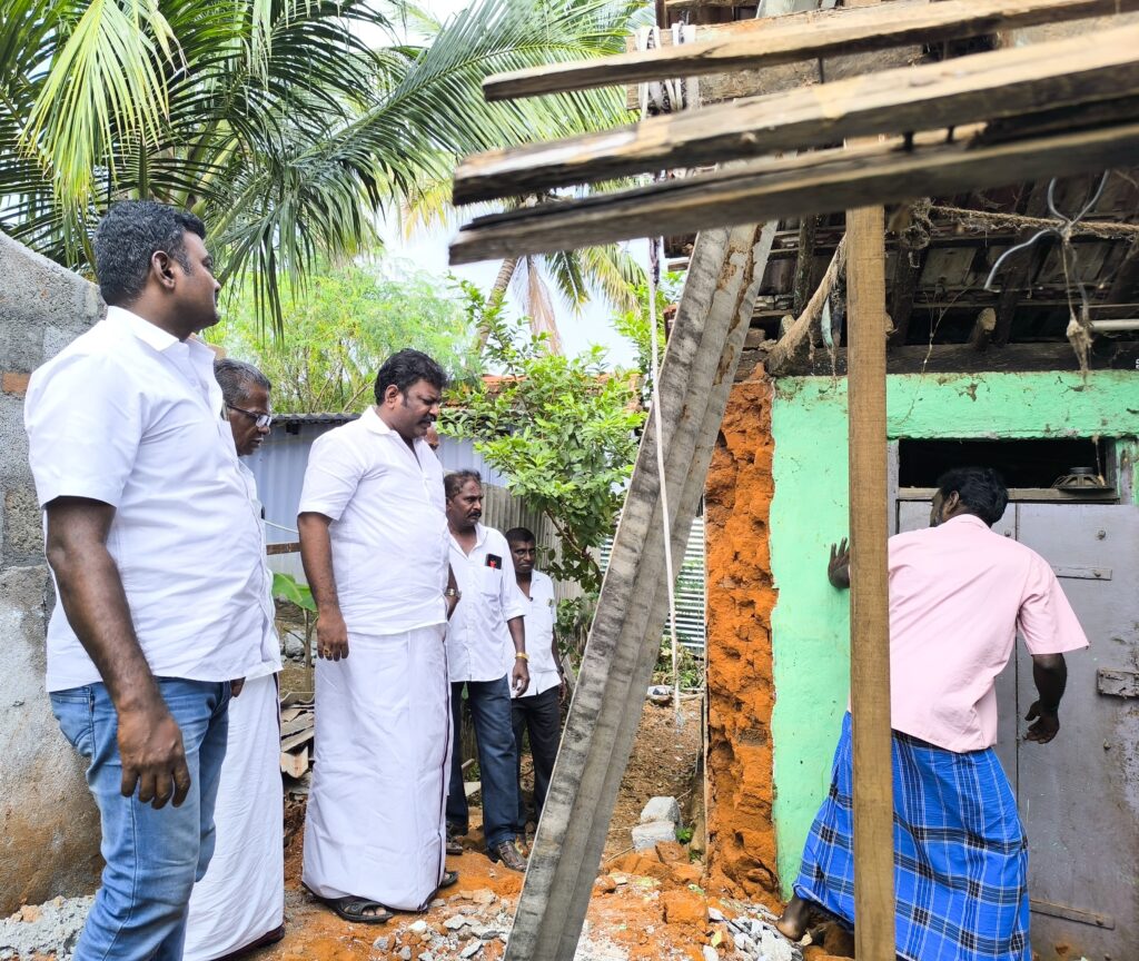 தூத்துக்குடி மாவட்டம் ஓட்டப்பிடாரம் சட்டமன்ற தொகுதிக்குட்பட்ட பகுதியில் கனமழை காரணமாக வீடு இடிந்தவா்களுக்கு திமுக ஓன்றிய செயலாளர் இளையராஜா நிதியுதவி வழங்கினார். திமுக தலைவரும் தமிழக முதலமைச்சருமான முக.ஸ்டாலின் டித்வா புயலை யொட்டி தூத்துக்குடி மாவட்டத்தில் பாதிப்புகள் எதுவும் ஏற்பட்டால் உடனடியாக மாவட்டசெயலாளர் மற்றும் அந்த பகுதியை சார்ந்த திமுக நிா்வாகிகள் உதவி செய்திட வேண்டும். என்று கேட்டிக்கொண்டிருந்த நிலையில். தூத்துக்குடி தெற்கு மாவட்ட திமுகவிற்குட்பட்ட ஓட்டப்பிடாரம் சட்டமன்ற தொகுதிக்குட்பட்ட பாஞ்சாலங்குறிச்சி ஊராட்சி பகுதியில் உள்ள இந்திராநகா் கீழத்தெரு பகுதியில் கன மழையால் வீடு இடிந்து சேதமான உாிமையாளருக்கு திமுக துணை பொதுச் செயலாளரும் தூத்துக்குடி நாடாளுமன்ற உறுப்பினருமான கனிமொழி கருணாநிதி, தெற்கு மாவட்ட திமுக செயலாளரும் மீன்வளம் மீனவா் நலன் மற்றும் கால்நடை பராமாிப்பு துறை அமைச்சர் அனிதா ராதாகிருஷ்ணன் ஆகியோா் ஆலோசனை படி ஓட்டப்பிடாரம் வடக்கு ஓன்றிய திமுக செயலாளரும் முன்னாள் ஊராட்சி மன்ற தலைவருமான இளையராஜா கனமழையால் பாதிப்படைந்த மக்களை நோில்சென்று மழையால் இடிந்து சேதமான வீடுகளை பாா்வையிட்டு அதன் உாிமையாளா்களுக்கு வடக்கு ஓன்றிய திமுக சாா்பில் நிதியுதவி வழங்கி ஆறுதல் கூறினாா். தமிழக முதல்வரின் உத்தரவுபடி எம்பி கனிமொழி அமைச்சர் அனிதா ராதா கிருஷ்ணன் ஆகியோரின் ஆலோசனையின் பேரில் திமுக ஒன்றிய செயலாளர் இளையராஜா திமுக நிர்வாகிகளோடு சென்று பொதுமக்களுக்கு ஆறுதலும் நிதி உதவி வழங்கியது பொதுமக்கள் மத்தியில் பாராட்டுக்கள் குவிகிறது.குவிகிறது.