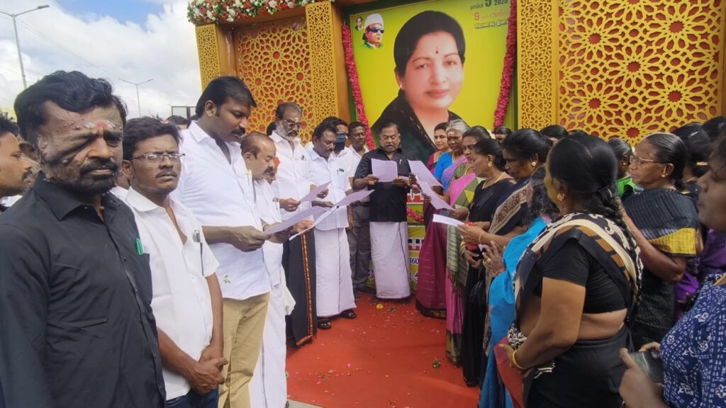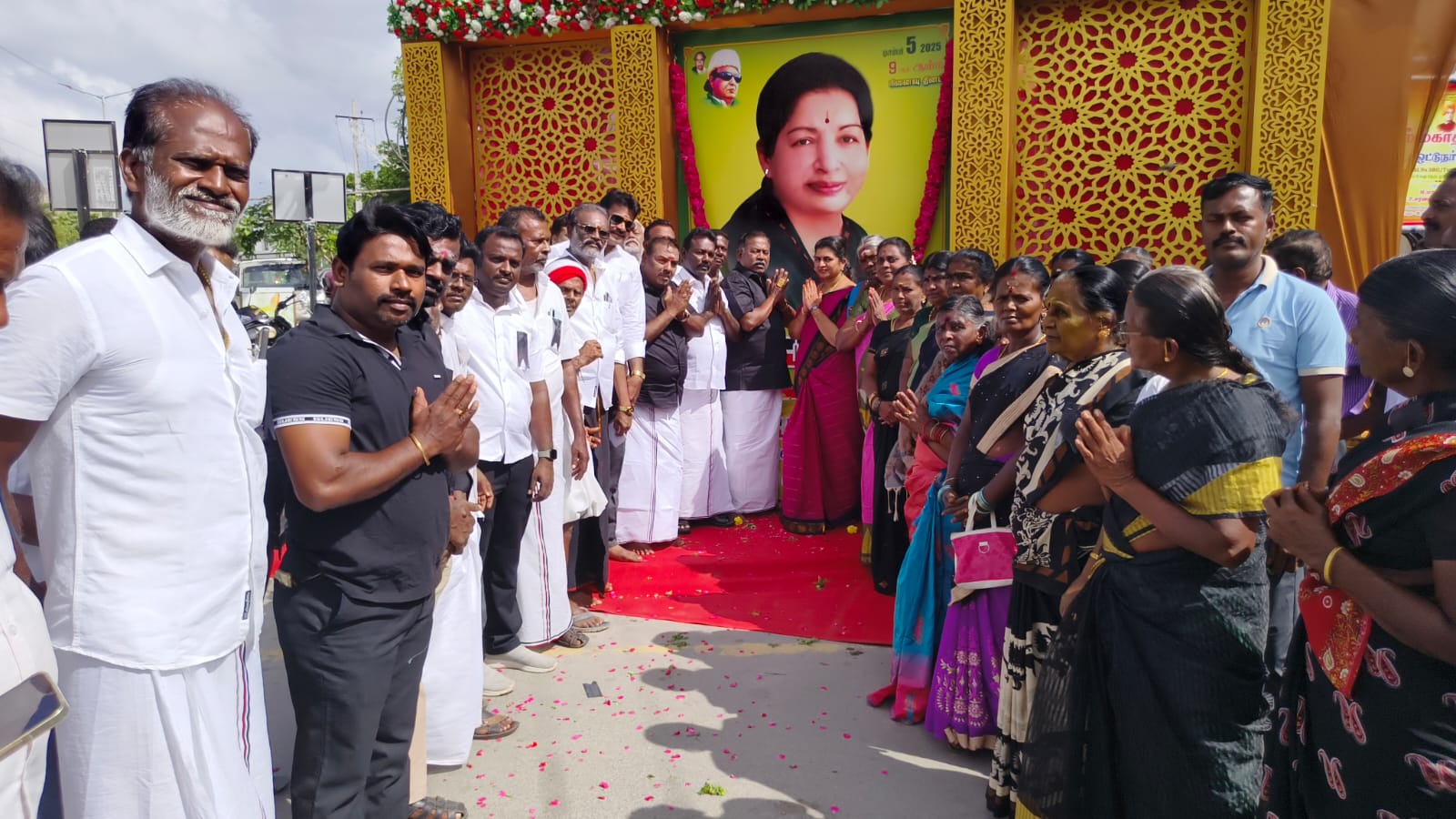 அதிமுக பொதுச்செயலாளரும், முன்னாள் முதலமைச்சருமான எதிர்கட்சித்தலைவர் எடப்பாடி பழனிச்சாமி உத்திரவிற்கிணங்க முன்னாள் முதலமைச்சர் ஜெயலலிதாவின் 9வது ஆண்டு நினைவு தினத்தை முன்னிட்டு மாநில அதிமுக வர்த்தக அணி செயலாளரும்; முன்னாள் அமைச்சருமான சி.த.செல்லப்பாண்டியன் தலைமையில் தூத்துக்குடி அண்ணா நகர் டூவிபுரம் சந்திப்பில் அலங்கரிக்கப்பட்ட ஜெயலலிதா படத்திற்கு மலரஞ்சலி செலுத்தி எடப்பாடி பழனிச்சாமி தலைமையில் மீண்டும் அதிமுக ஆட்சி அமைக்க உறுதிமொழி எடுத்துக் கொண்டனர்.
