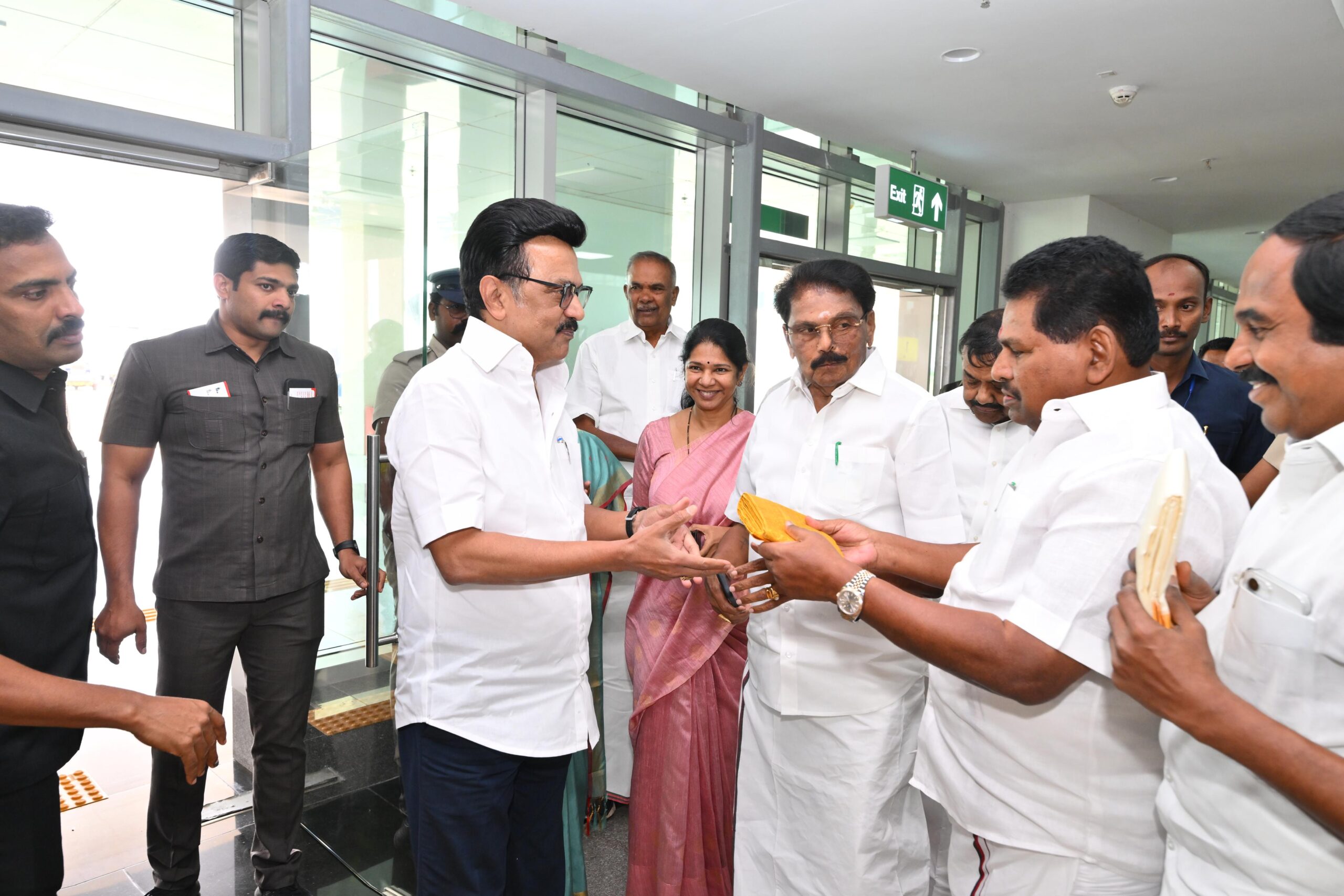 அதனை தொடர்ந்து, சபாநாயகர் அப்பாவு, தூத்துக்குடி எம்பி கனிமொழி, மாவட்ட ஆட்சித் தலைவர் இளம்பகவத் காவல் கண்காணிப்பாளர் அல்பர்ட்ஜான், ஆணையர் ப்ரியங்கா, அமைச்சர்கள் நேரு, ராமச்சந்திரன், மனோ தங்கராஜ், தங்கம் தென்னரசு, ராஜகண்ணப்பன், எம்.பி. வில்சன், எம்எல்ஏக்கள் மார்க்கண்டேயன், சண்முகையா, ரூபி மனோகரன், ராஜா, தமிழரசி, அப்துல் வஹாப், தூத்துக்குடி மேயர் ஜெகன்பெரியசாமி, திருநெல்வேலி மேயர் கிட்டு என்ற ராமகிருஷ்ணன், மாவட்ட செயலாளர் ஆவுடையப்பன், ஆகியோர் வரவேற்றனர்.