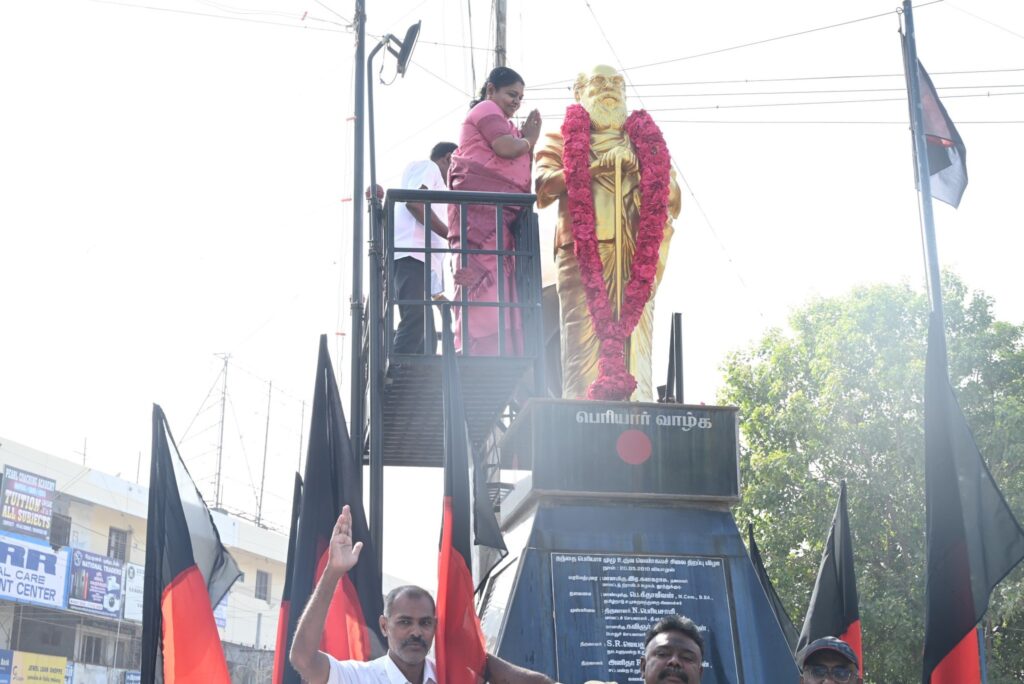 பெரியாரின் 52வது நினைவு நாளையொட்டி தென்பாகம் காவல்நிலையம் அருகில் உள்ள அவரது சிலைக்கு வடக்கு மாவட்ட திமுக செயலாளரும் சமூகநலன் மற்றும் மகளிர் உரிமைத்துறை அமைச்சர் கீதாஜீவன் மேயர் ஜெகன் பெரியசாமி ஆகியோர் மாலை அணிவித்து மரியாதை செலுத்தினார்கள்.