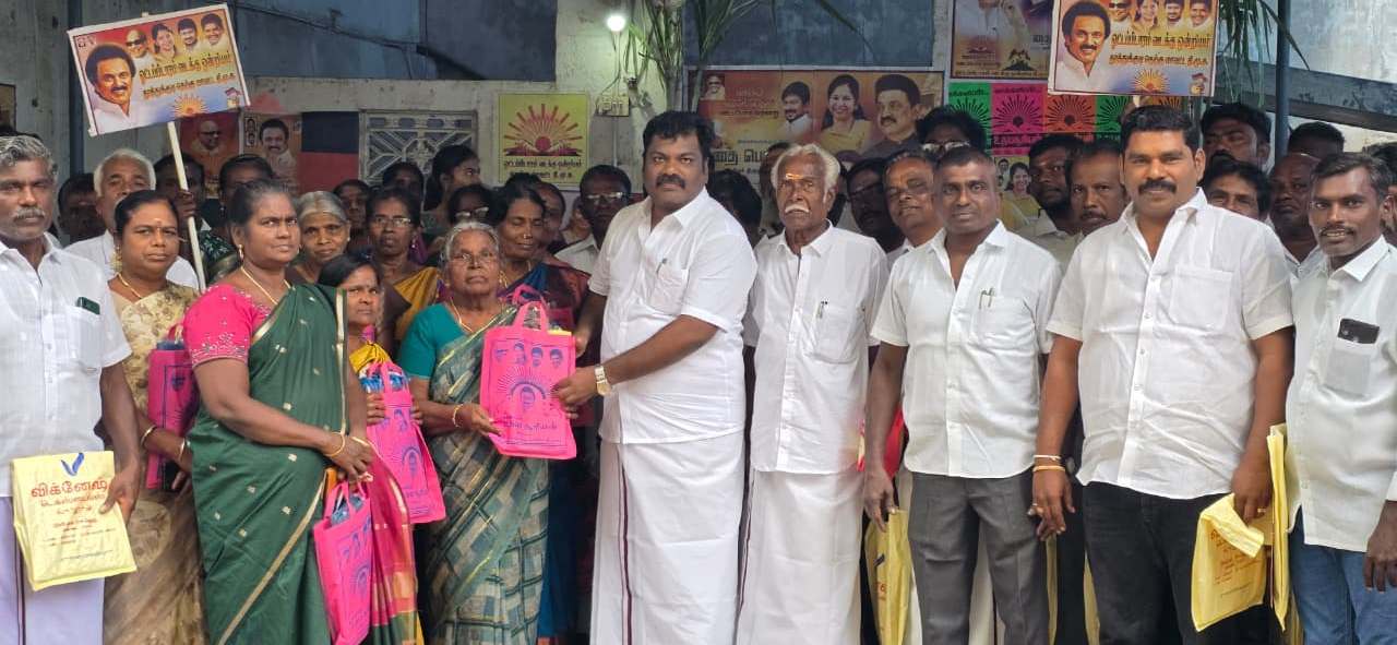 திமுக நிர்வாகிகள் மற்றும் பொது மக்கள் உட்பட சுமார் 500 க்கும் மேற்பட்டோருக்கு பொங்கல் சிறப்பு நலத்திட்ட உதவிகளான வேட்டி சேலை பொங்கல் கரும்பு உள்ளிட்ட பொருள்களை ஓட்டப்பிடாரம் வடக்கு ஓன்றிய புதியம்புத்தூா் அலுவலகத்தில் வைத்து வடக்கு ஒன்றிய திமுக செயலாளரும் முன்னாள் ஊராட்சி மன்ற தலைவருமான இளையராஜா வழங்கினார். அதனைத் தொடர்ந்து அவர் பேசுகையில் 2021ல் முதலமைச்சராக தளபதியாா் பொறுப்பேற்றதும் கொரோனா 2ம் அலை இருந்த நேரம் ஆக்ஜிசன் தட்டுபாடு மருத்துவமனையில் இடம் பிரச்சனை இப்படி பல்வேறு வகையில் இருந்த காலத்தில் அந்த கொரோனா பாதிக்கப்பட்ட நோயாளிகளை நோில் சென்று சந்தித்து ஆறுதல் கூறிய முதலமைச்சா் ஸ்டாலின் அப்போது பொதுமக்கள் நலன் கருதி அனைத்து ரேசன் கடைகளுக்கு ரூ 4 ஆயிரம் வழங்கினாா். பால்விலை 3 ரூ குறைக்கப்பட்டது. மகளிா் உாிமைத்தொகை இரண்டாம் கட்டமாக வழங்கப்பட்டுள்ளது. மக்களின் மகிழ்ச்சி நமக்கு முக்கியம் என்பதை கருத்தில் மகளிருக்கு எண்ணற்ற திட்டங்களை உருவாக்கி செயல்படுத்தி உள்ளார் . தற்போது பொங்கல் தொகுப்புடன் ரூ 3 ஆயிரம் வழங்கப்படுகிறது. முதலமைச்சர் ஆட்சியில் எல்லாத்துறைகளிலுமே தமிழகம் வளர்ச்சி யடைந்துள்ளது. இதை பாஜக அரசு பாராட்டியுள்ளது. குறைசொல்வதற்கு எதுவும் இல்லை 2011 முதல் 21 வரை 10 ஆண்டுகாலம் அதிமுக ஆட்சியில் புதிதாக எந்த பணியும் நடைபெறவில்லை.