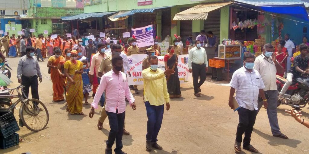 நகராட்சி பணியாளர்கள் சுகாதாரத்துறை அதிகாரிகள் ஸ்ரீ சேவுகன் அண்ணாமலை கல்லூரி NCC நாட்டு நல பணியாளர்கள் அணிவகுத்து முக கவசம் அணிய வேண்டும் ,அடிக்கடி கை கழுக வேண்டும் ,சமூக இடைவெளி கடை பிடிக்க வேண்டும் என பதாதைகள் எந்தி தேவகோட்டை நகராட்சி அலுவலகத்திலிருந்து பேருந்து நிலையம், தியாகிகள்பூங்கா, காய்கறி வணிக வளாகம் பகுதிகளில் சென்று பேரணியாக விழிப்புணர்வு ஏற்படுத்தினர்.