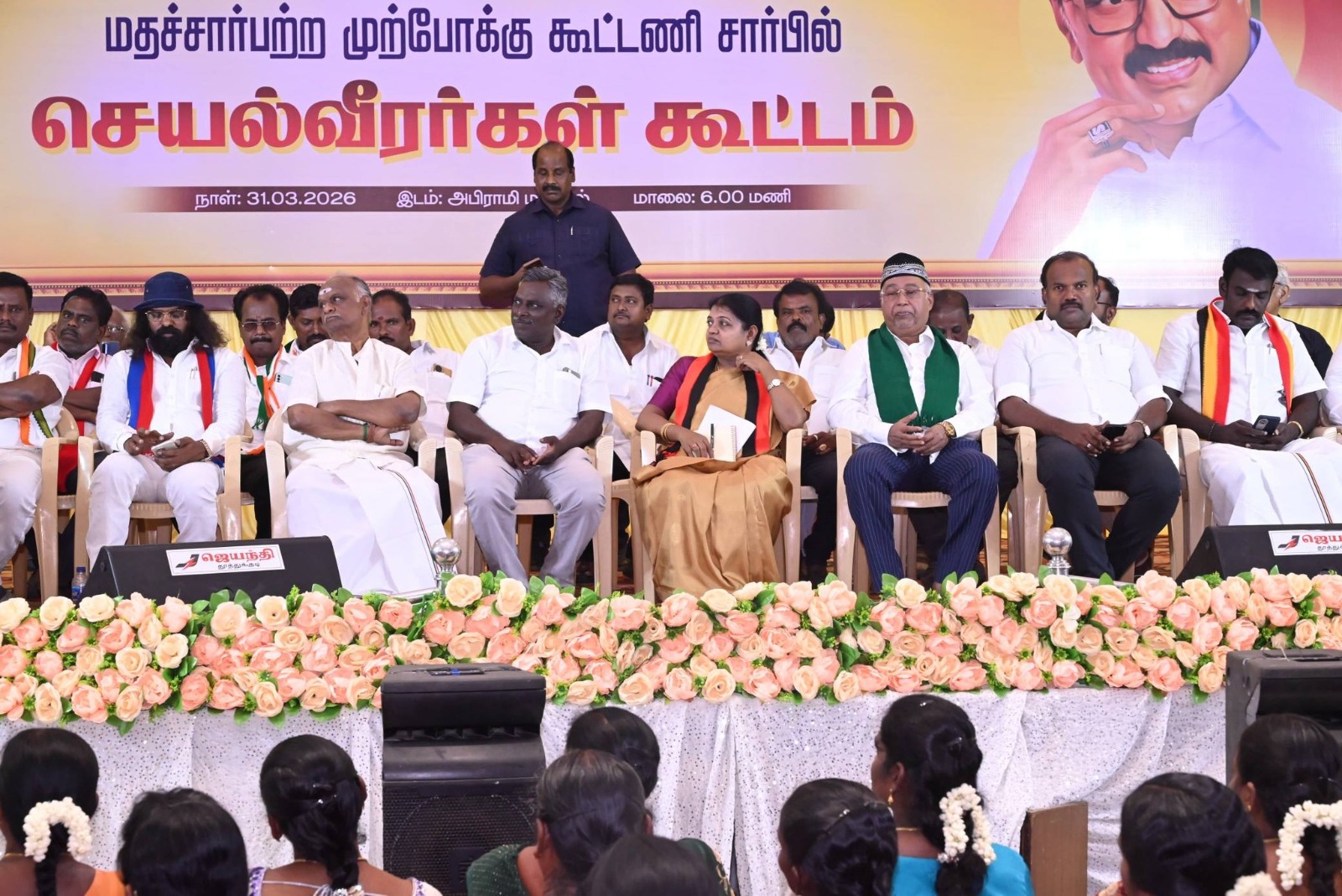 காங்கிரஸ் மாநில துணைத்தலைவர் சண்முகம், மாவட்ட தலைவர்கள் சகாயராஜ், பெருமாள்சாமி, இந்திய கம்யூனிஸ்ட் கட்சி மாவட்ட செயலாளர் கரும்பன், மார்க்கிஸ்ட் கம்யூனிஸ்ட் கட்சி மாவட்ட செயலாளர் ஆறுமுகம், மதிமுக மாநக செயலாளர் முருகபூபதி, விடுதலை சிறுத்தை கட்சி மாவட்ட செயலாளர் விமல்வங்காளியர், இந்திய யூனியன் முஸ்லீம்லீக் மாவட்ட தலைவர் மீராசா, மனிதநேய மக்கள் கட்சி மாவட்ட செயலாளா யூசுப், மனிதநேய ஜனநாயக கட்சி மாவட்ட செயலாளர் முகமதுஅசன், மூக்குலத்தோர் புலிப்படை மாவட்ட செயலாளர் மணி, தேமுதிக மாவட்ட செயலாளர் தயாளலிங்கம், எஸ்டிபிஐ மாவட்ட செயலாளர் மைதீன்கனி, திராவிடர் கழக தலைவர் முனியசாமி, சமத்துவ மக்கள் கழக மாவட்டச் செயலாளர் அற்புதராஜ், மக்கள் நீதிமய்யம் மாவட்டச்செயலாளர் ஜவஹர், மேயர் ஜெகன் பெரியசாமி ஆகியோர் முன்னிலை வகித்தனர்.