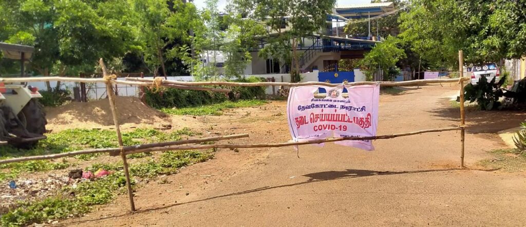 கொரோனா பாதிப்புக்கு உள்ளாகிய ராம்நகர் 4வது விதி மற்றும் கருதாஊரணி ஆகிய பகுதிகளில் இன்று தேவகோட்டை வட்டார மருத்துவ அலுவலர் Dr. செல்வகுமார், Dr.ஷியாம் நகராட்சி சுகாதார துறை ஆய்வாளர் ஆகியோர் நேரில் சென்று ஆய்வு செய்தனர், அந்த பகுதியை தடை செய்யப்பட்டபகுதியாக அறிவுறுத்தி தேவகோட்டை நகராட்சியினர் தடுப்பு அமைத்து பொதுமக்கள் யாரும் செல்லாத வண்ணம் தடை செய்துள்ளனர்.