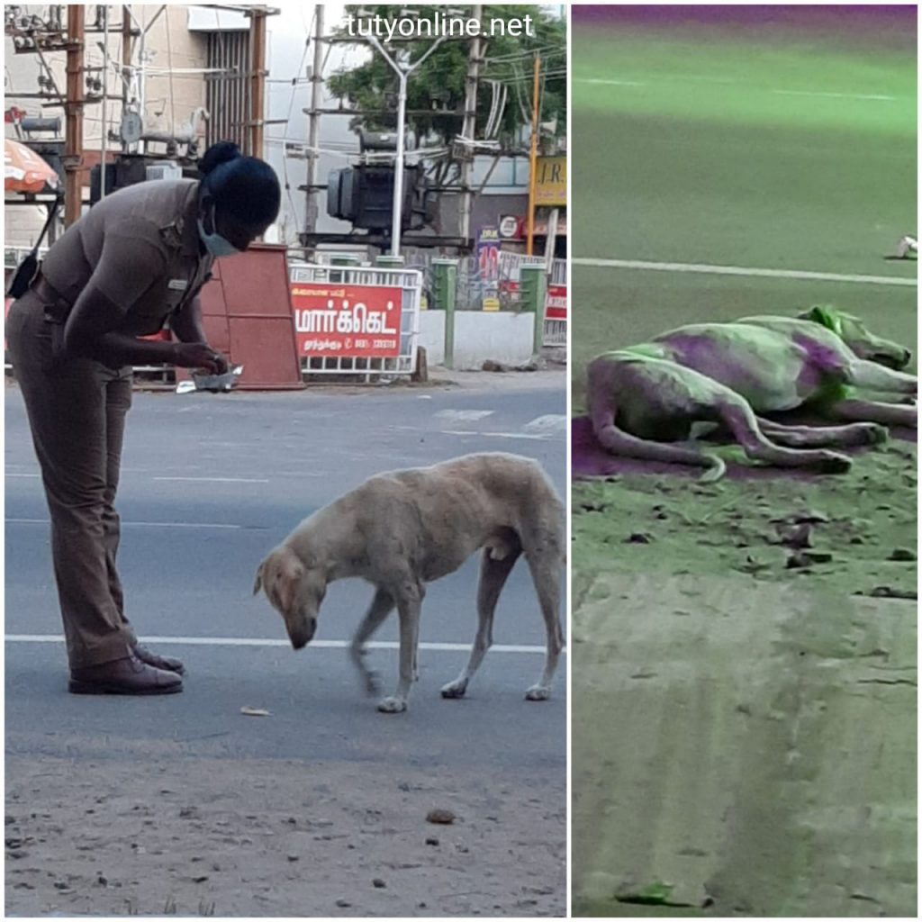 ஜெயசித்ரா தலைமையில் காவலர்கள் இன்று ( 26.4.2020) மாலை 6.30 மணி அளவில் பாதுகாப்பு பணியில் ஈடுபட்டிருந்த போது,அங்கே ஒரு நாய் ஒன்று பசி மயக்கத்தில் அங்கும் இங்கும் சுற்றி திரிந்தது.அதன் பசி தேவையை அதன் மூலம் அறிந்து கொண்ட பெண் உதவி ஆய்வாளர் ரோடா பாய் ஜெயசித்ரா தான் வைத்திருந்த தன்னுடைய இரவு உணவை அந்த நாய்க்கு கொடுத்தார்.அதன்பின் அந்தநாய் உண்டு வயிறு நிறைந்த நிம்மதி பெரும் மயக்கத்தில் படுத்து உறங்க ஆரம்பித்து விட்டது.