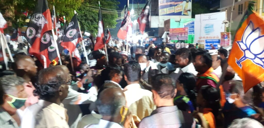 நேற்று சி.த.செல்லப்பாண்டியன் தலைமையில் தூத்துக்குடி மாநகராட்சிக்கு உட்பட்ட முத்தையாபுரம் பகுதியில் தீவிர தேர்தல் பிரச்சாரம் மேற்கொண்டார். சென்ற இடங்களில் எல்லாம் அதிமுக மற்றும் கூட்டணி கட்சியினர் பொதுமக்கள் உற்சாக வரவேற்பு கொடுத்தனர். அதுபோல் இன்று 1ம் கேட் காந்தி சிலை முன்பிருந்து துவங்கிய இந்த தேர்தல் பிரச்சாரத்தின் போது தூத்துக்குடி மாநகர பகுதியில் உள்ள அதிமுக தொண்டர்கள் சி.த.செல்லப்பாண்டியன் தலைமையில் படை சூழ திறந்தவெளி ஜீப்பில் பல்வேறு இடங்களுக்கு சென்று தீவிர வாக்கு சேகரிப்பில் ஈடுபட்டார். அதிமுக அடிமட்ட தொண்டன் வரை அரவணைப்போடு பழக கூடியவர் சி.த.செல்லப்பாண்டியன். ஆகையால், அதிமுக ரத்தத்தின் ரத்தங்கள் செல்லப்பாண்டியன் பின்னாள் ஓன்று கூடி அணிவகுத்த காட்சி எதிர் கட்சியை கதிகலங்க செய்துள்ளதாக அரசியல் வட்டாரத்தில் பேசப்படுகிறது.