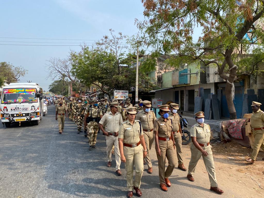 மத்திய துணை ராணுவப் படை, காவல்துறையினர் என 200 பேர் கொண்ட காவல்துறையினர் அணிவகுப்பு நடைபெற்றது இந்த அணிவகுப்பு கடலூர் மார்கெட் கமிட்டியிலிருந்து புறப்பட்டு