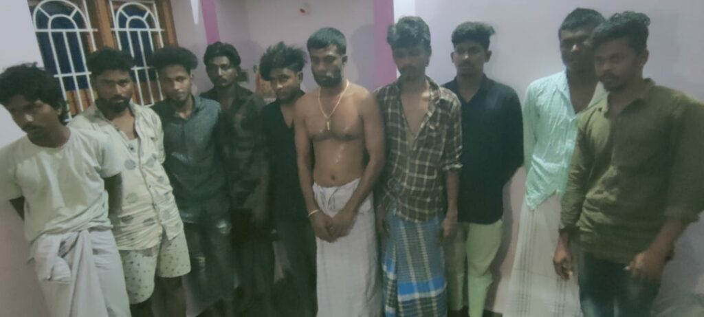 அதனையடுத்து ஸ்ரீவைகுண்டம் துணை போலீஸ் சூப்பிரண்டு வெங்கடேசன் மேற்பார்வையில் செய்துங்கநல்லூர் காவல் நிலைய ஆய்வாளர் ராஜசுந்தர் தலைமையில் உதவி ஆய்வாளர் திலீபன் மற்றும் காவலர்கள் அடங்கிய தனிப்படையினர் தீவிர ரோந்து பணியில் ஈடுபட்டபோது செய்துங்கநல்லூர் காவல் நிலைய எல்லைக்குட்பட்ட வி. கோவில்பத்து பகுதியை சேர்ந்த சந்தானம் மகன்கள் கணேசன் (23), சந்தனராஜ் (20), தேஞ்சான்சோலை பகுதியை சேர்ந்த அங்கப்பன் மகன் மருதுபாண்டி (21), தென்திருப்பேரை மணல்மேடு பகுதியை சேர்ந்த செல்வன் மகன் பெனிஸ்சிங் (20) ஆகிய 4 பேரை கைது செய்தனர். ஆக மொத்தம் நேற்று ஒரே நாளில் 10 ரவுடிகள் கைது செய்யப்பட்டுள்ளனர்.