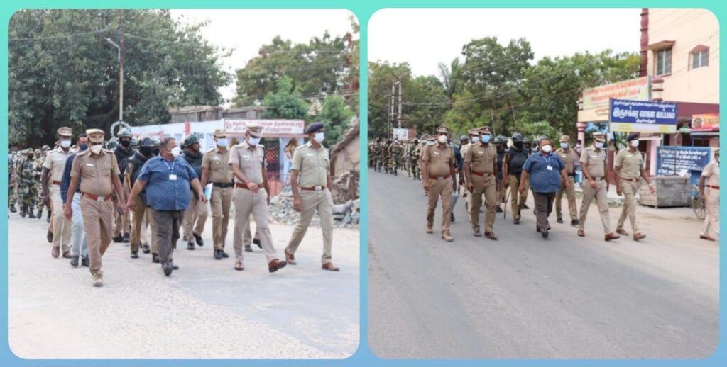 வருகின்ற தமிழக சட்டமன்ற தேர்தல் பாதுகாப்பை முன்னிட்டு காவல்துறை மற்றும் துணை ராணுவப்படையினரின் கொடி அணிவகுப்பு இன்று (01.04.2021) தேர்தல் செலவின பார்வையாளர் (Expenditure Observer) திரு. குந்தன் யாதவ் I.R.S அவர்கள் மற்றும் தூத்துக்குடி மாவட்ட காவல் கண்காணிப்பாளர் திரு. எஸ். ஜெயக்குமார் அவர்கள் தலைமையில் திருச்செந்தூர் ஊராட்சி ஒன்றிய அலுவலகம் முன்பாக தொடங்கி மெயின் ஆர்ச், டி.பி ரோடு, வேலந்தம்மன் கோவில் தெரு, வடக்கு ரதவீதி, இரும்பு ஆர்ச் வழியாக ராஜ் மஹாலில் வந்து கொடி அணிவகுப்பு நிறைவடைந்தது.