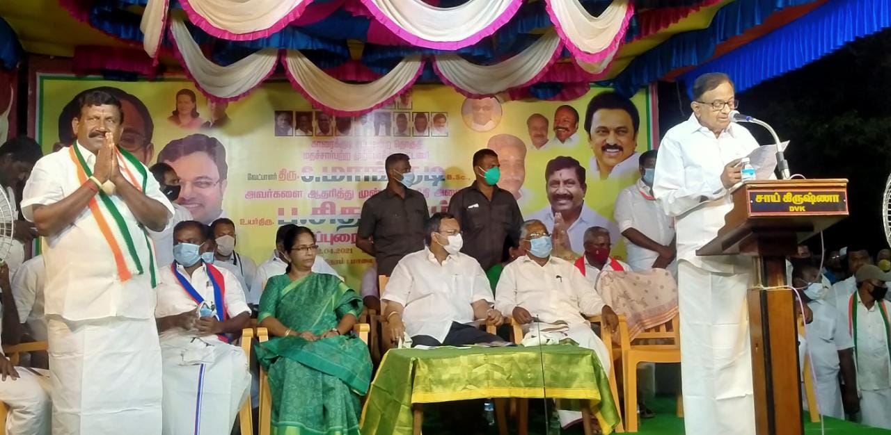 சிவகங்கை மாவட்டம் காரைக்குடி சட்டமன்ற தொகுதியில் போட்டியிடும் காங்கிரஸ் கட்சி வேட்பாளர் எஸ்.மாங்குட ஆதரித்து நேற்று தேவகோட்டை அண்ணா ஆர்ச் அருகில் மாபெரும் தேர்தல் பொதுக்கூட்டம் நடைபெற்றது அதற்கு முன் இரு சக்கர வாகன பேரணியை கார்த்திக் சிதம்பரம் எம்.பி தொடங்கி வைத்தார் நகர் முழுவதும் பிரச்சாரம் மேற்கொண்டனர் பின் பொது கூட்டத்தில் முன்னாள் மத்திய அமைச்சர் ப.சிதம்பரம் பேசுகையில் அதிமுக அரசு 10 ஆண்டுகளாக எந்த திட்டத்தையும் எடுத்து முடிக்கவில்லை, அதிமுக ஆட்சிக்கு மாற்று ஆட்சியாக திமுக ஆட்சி மட்டுமே அமையும், பிஜேபி வேட்பாளர் H.ராஜா வெற்றி பெற்றால் என்னென்ன பேசுவார் என்று உங்களுக்கு தெரியும், பாரதியஜனதா கட்சி நம் மொழி, இனம், கலாச்சாரம் ஆகியவைக்கு பகையான கட்சி, தமிழ் மொழிக்கு பகையான மொழி ஹிந்தி மொழி என பேசினார். பின்னர் சிவகங்கை பாராளுமன்ற உறுப்பினர் கார்த்திசிதம்பரம் பேசுகையில் ஜனநாயக நாடு விரைவில் சர்வாதிகாரிநாடாக இந்தியா மாறிவிடும், பாஜக வாசம் வாடை பாஜக நிழல் தமிழ் நாட்டுக்கு தேவை இல்லை, பாஜக வேட்பாளர் 25 வருடமாக நிற்கிறார் அவர்களை நீங்கள் புறக்கணித்துவிட்டு வருகிறீர்கள் அதேபோல் இந்த முறையும் புறக்கணிக்க வேண்டும், இந்த தொகுதியில் பிக்பாஸ் கட்சி சார்பாக ஒரு வேட்பாளர் போட்டிருக்கிறார் பிக்பாஸ் பிடித்தால் பாருங்கள் அந்த கட்சிக்கு ஓட்டுப் போடுவது நோட்டாவிற்கு போடுவதற்கு சமம்,குக்கர்ல சமையல் பண்ணலாம் குக்கருக்கு ஓட்டலாம் போடமுடியாது பங்காளி சண்டைக்காக நிற்கும் கட்சி அமமுக கட்சி, பிக்பாஸ், குக்கர்,நாம் தமிழர் ஆகிய கட்சி சூப்பர் நோட்டா கட்சியாகும், கை சின்னத்தில் வாக்களிக்குமாறு கேட்டுக் கொண்டார். இந்த பொதுக்கூட்டத்தில் திமுக காங்கிரஸ் மற்றும் கூட்டணி கட்சி முக்கிய தலைவர்களும் நிர்வாகிகளும் ஏராளமான தொண்டர்களும் பங்கேற்றனர்.