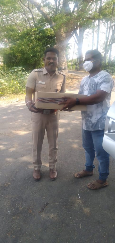 இரவு பகல் என்று பாராமல் தன் குடும்பத்தினரை கூட பார்க்க செல்லமுடியாமல் இந்த கடும் வெயிலில் மக்கள் நலனுக்காக தொடர்ந்து பணியாற்றிவரும் சுமார் 300 காவலர்களுக்கு மேல் சுத்திகரிக்கப்பட்ட குடிநீர் பாட்டில்கள், குளிர் பாணம் , பிஸ்கட் பாக்கெட் ஆகியவற்றை நேற்று நேரில் சென்று போலீஸ்சார்களுக்கு வழங்கி அவர்களின் பணிகளை பாராட்டி போலீஸ் செய்தி TV