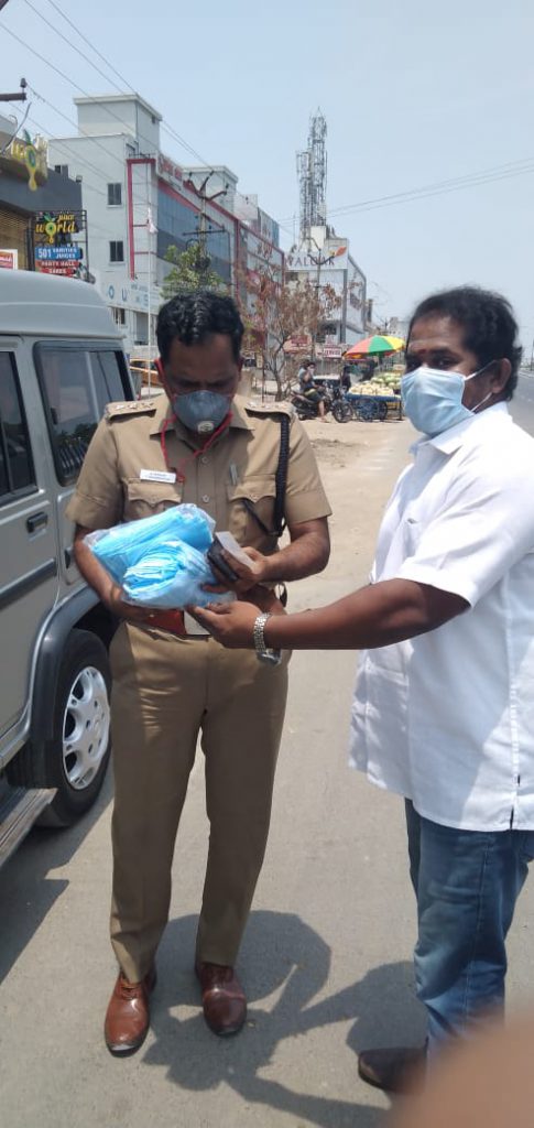 சென்னையை போன்று தமிழகம் முழுவதும் போலீஸ் செய்தி TV குழுமத்தில் பணியாற்றும் செய்தியாளர்கள், புகைப்பட கலைஞர்கள் மனித நேய பணிகளை செய்ய உள்ளனர் என்பது குறிப்பிட தக்கது இன்று சென்னை மடிப்பாக்கம் உதவி ஆணையர், மற்றும் ஊத்துக்கோட்டை டி.எஸ்.பி. சந்திரஹாசன் ஆகியோரை நேரில் சந்தித்து காவலர்களுக்கு பாதுகாப்பு உபகரணமாக விளங்கும் சானிடைசர், முக கவசம் ஆகியவை வழங்கினர். தனது குடும்பத்தை கூட பொறுப்படுத்தாமல் பொது மக்களுக்கா க இரவு பகல் என்று பாராமல் பணியாற்றும் காவலர்கள் நமக்கு தற்போது காவல் தெய்வம் ஆக விளங்குகிறார்கள்.அவர்கள் நலனில் அக்கறையோடு தற்போது போலீஸ் செய்தி டிவி சார்பில் 2 வது நாளாக முக கவசம் போன்ற பொருள்களை வழங்குகிறோம். என்று போலீஸ் செய்தி டிவி துணை ஆசிரியர் கேசவன் தெரிவித்தார். இந்த பணிகள் தமிழகம் தொடரும் என போலீஸ் செய்தி டிவி குழுமம் சார்பில் தெரிவிக்கபட்டது.